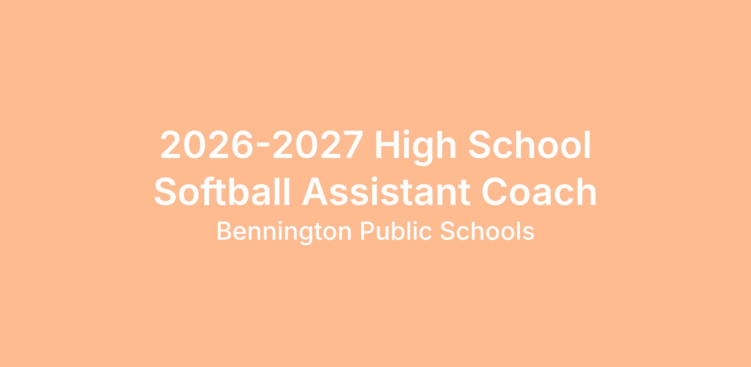 JOB TITLE: Assistant Softball Coach - Bennington High School