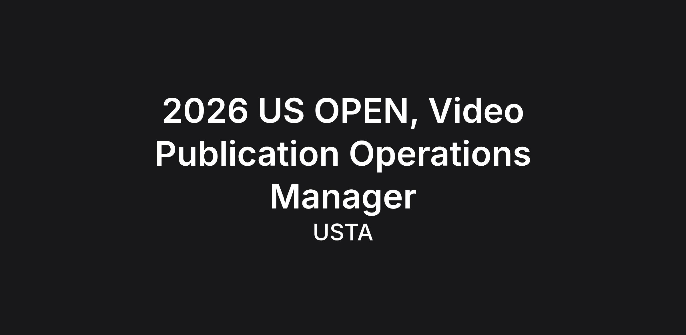 2026 US OPEN, Video Publication Operations Manager in New York Time Frame: August 19 - September 13th, 2026 - REMOTE