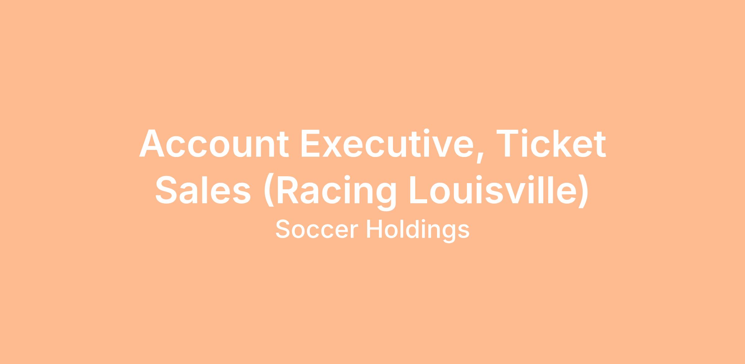 The Account Executive, Ticket Sales will be responsible for generating revenue by prospecting and selling individual, corporate, group, and partial plan ticket packages for both Louisville City FC and Racing Louisville FC. This role focuses on building new business relationships, driving ticket sales, and contributing to overall club revenue goals.