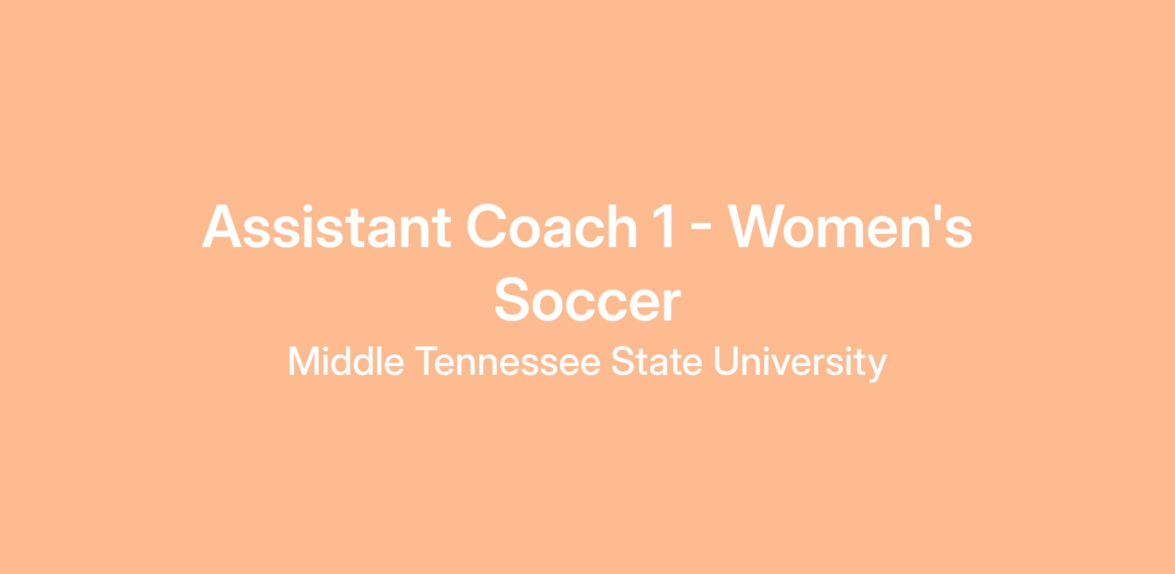Murfreesboro, Tennessee, Middle Tennessee State University, a Division I institution, member of the Conference USA, invites applications for the position of Assistant Women's Soccer Coach/Goalkeeper coach. Essential duties include: assist the Head Coach with day to day coaching of student athletes; training the goalkeepers; recruiting academically sound and competitive student athletes; scheduling to enhance championship opportunities; managing equipment, organizing and arranging team travel plans; overseeing and promoting camps; compliance with NCAA rules among staff and student athletes; budgeting assigned funds; and serve as an ambassador of the university and a valued member of the community. Assist the University's Head Women's Soccer Coach organize and administer all aspects of the NCAA Division I women's soccer program: assist in all phases of the development of a quality NCAA Division I soccer program that will be competitive on the field and in the classroom within NCAA guidelines and in a professional manner. Make public appearances and speak at civic events within the community. Remain current on changes and enhancements in the sport of soccer sport. Expected to know and follow NCAA rules and regulations and successfully pass the recruiting test each year to recruit for the university. NCAA Compliance documentation will be completed accurately and submitted to the compliance office in a timely fashion. Bachelor's degree required. Master's preferred.