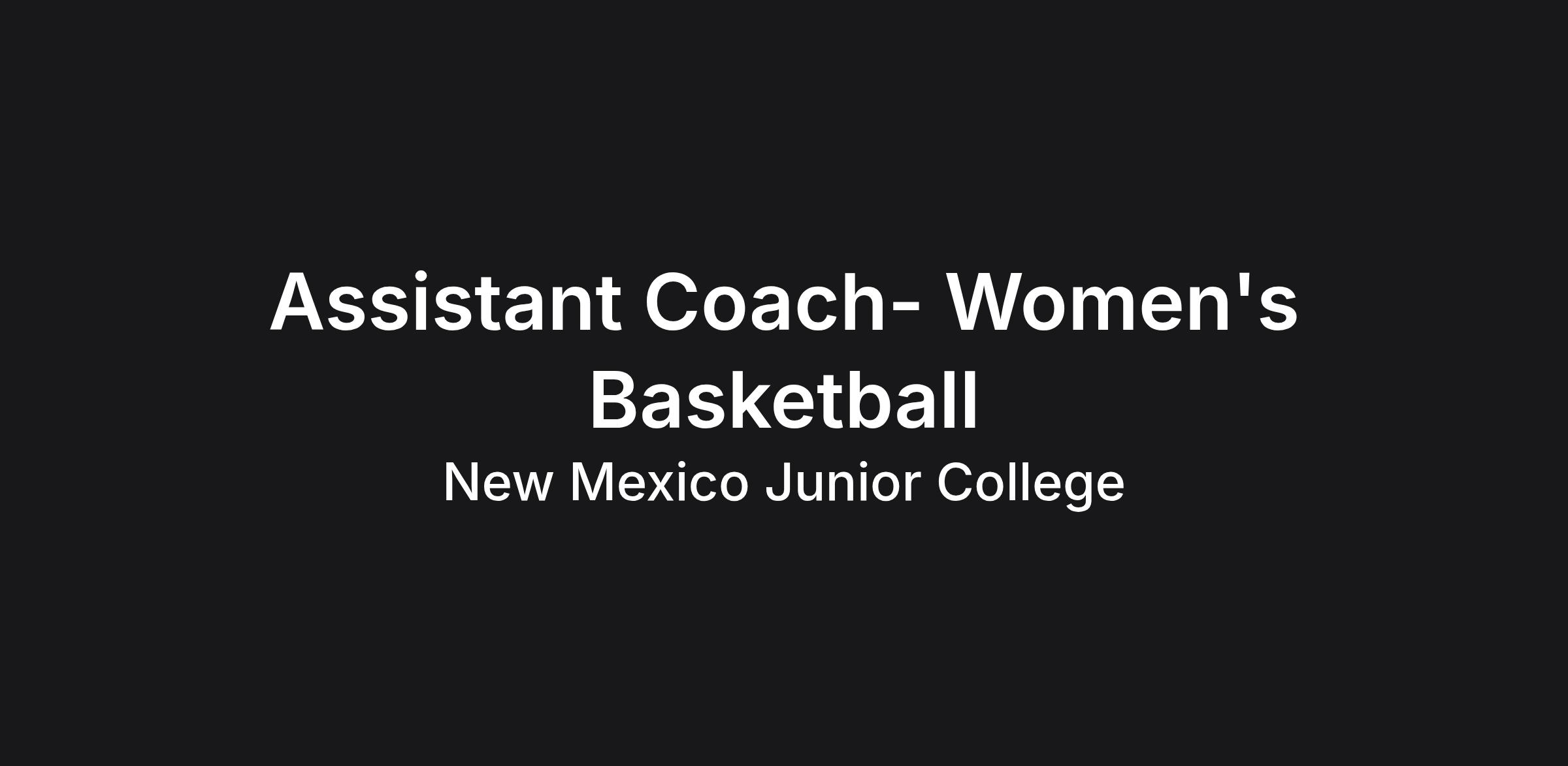 Hobbs, New Mexico, The Assistant Women's Basketball Coach shall report to the Director of Athletics/ Head Basketball Coach. Duties and responsibilities include, but are not limited to, the following: