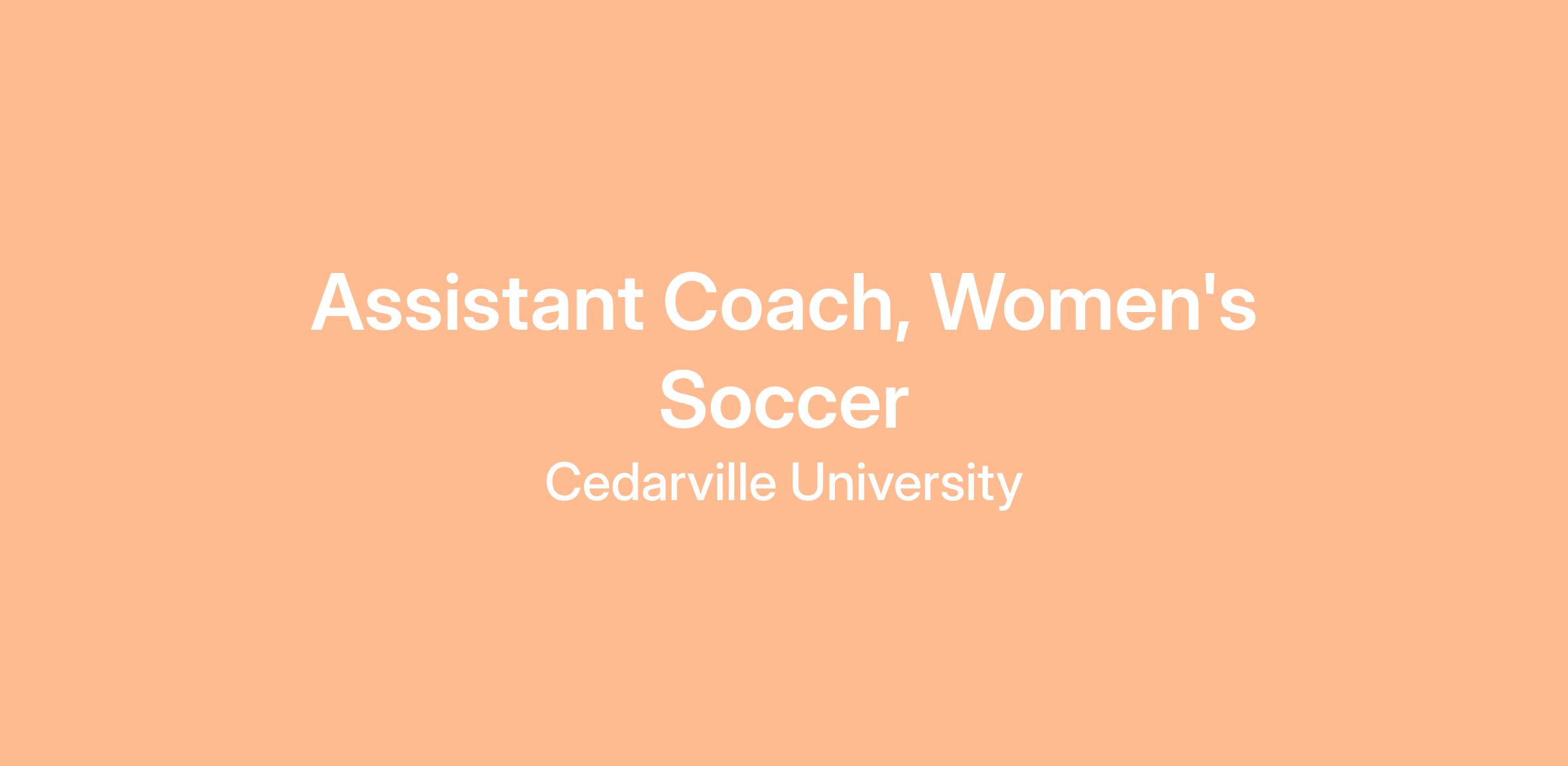 Summary Cedarville University seeks an Assistant Coach for Women’s Soccer to support the Head Coach in all aspects of a competitive NCAA program. This role plays a key part in recruiting, player development, practice planning, and day-to-day program operations, while helping cultivate a Christ-centered team culture. The Assistant Coach will coach on the field, mentor student-athletes academically and spiritually, and contribute to the overall success and integrity of the program.