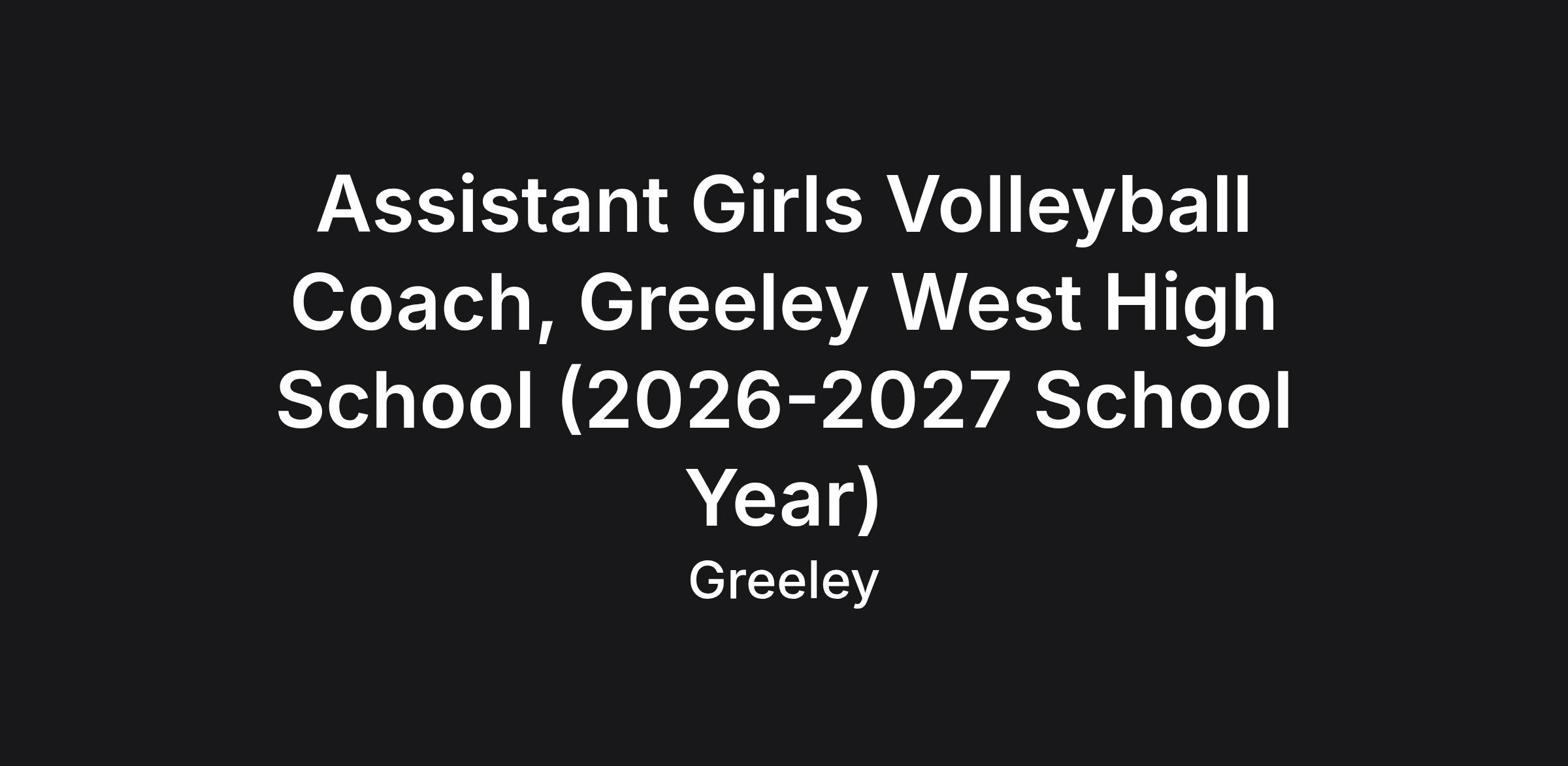 Assistant Girls Volleyball Coach, Greeley West High School (2026-2027 School Year)