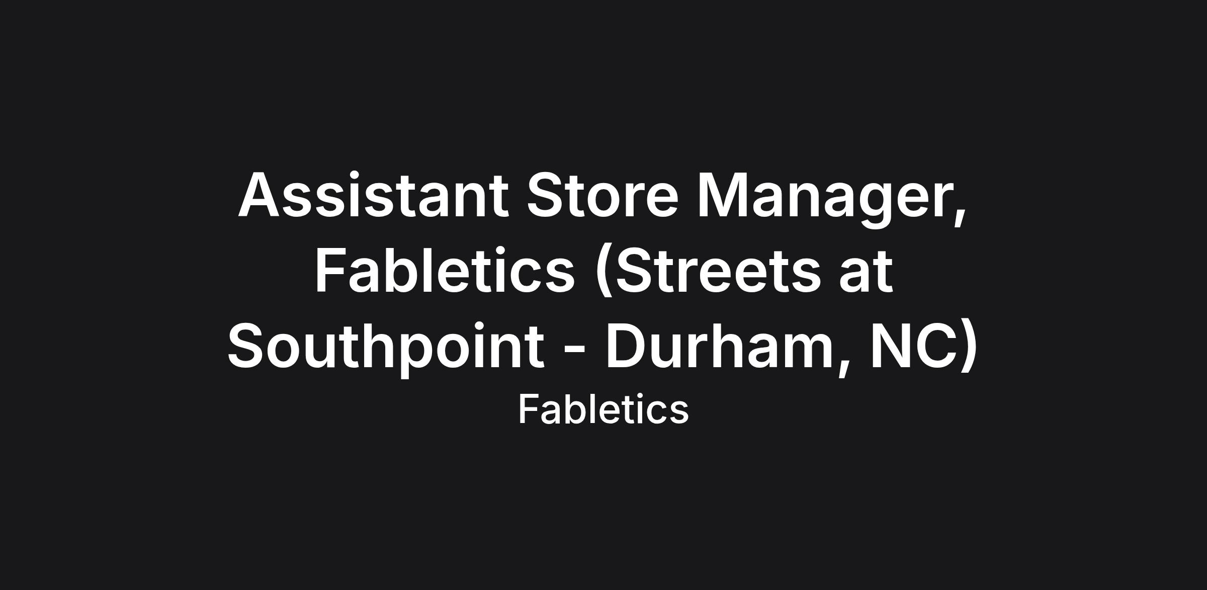 Fabletics is seeking a passionate and driven Retail Assistant Store Manager for our Fabletics Retail Store at Streets at Southpoint in Durham, NC!!