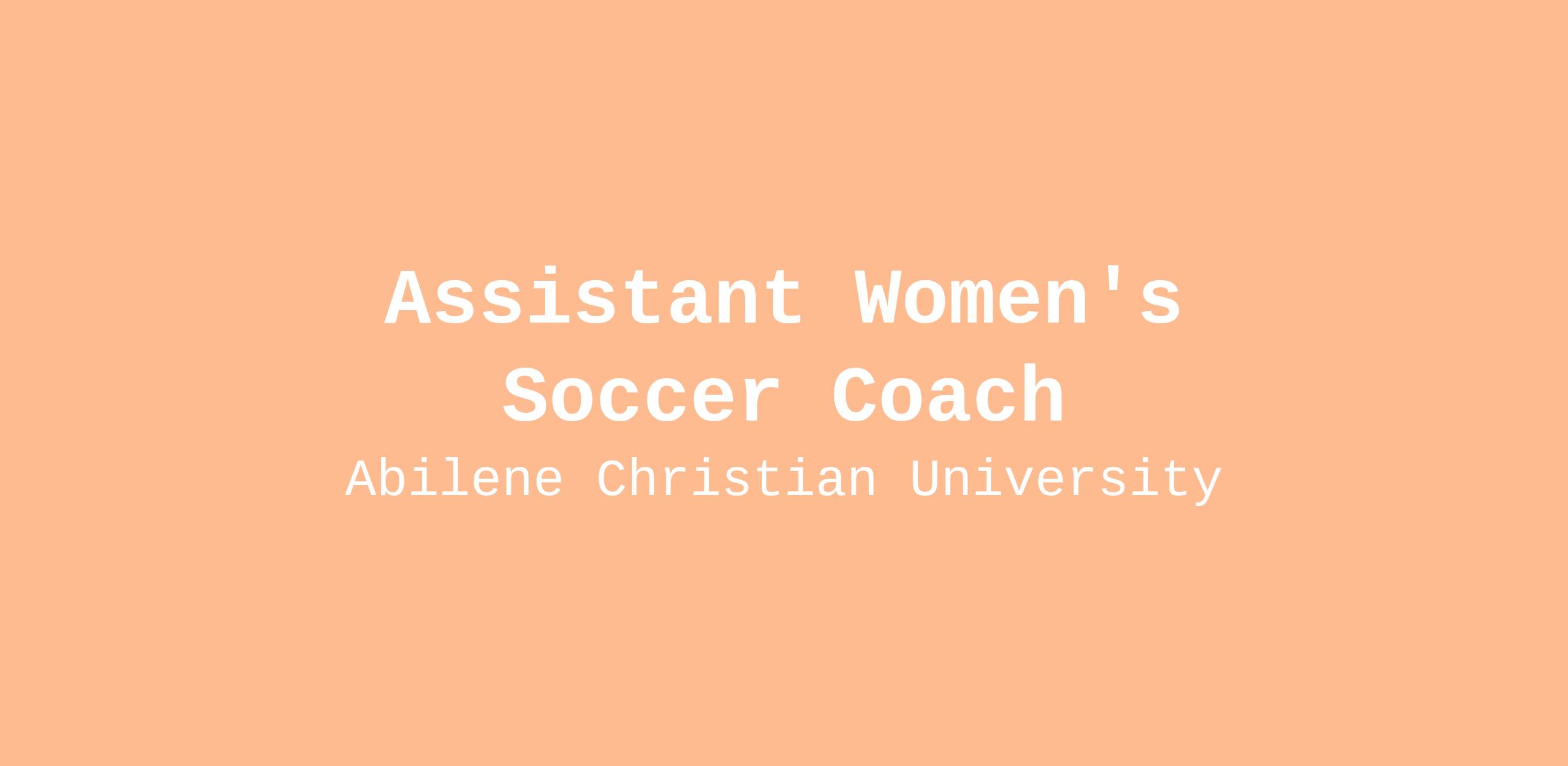 Abilene, Texas, Responsible to the Head Coach and Vice President for Athletics to promote, enhance, and oversee the women’s soccer program while maintaining compliance with all ACU, WAC, and NCAA Division I rules and regulations. Promote and support the university's mission and vision within their sport's program, coaching staff, and student-athletes. Responsible for the oversight of the academic, athletic, and spiritual development of student-athletes. Scope: Responsible to the Head Coach and Vice President for Athletics to promote, enhance, and oversee the Women’s Soccer program while maintaining compliance with all ACU, UAC, and NCAA Division I rules and regulations. Promote and support the university's mission and vision within their sport's program, coaching staff, and student-athletes. Responsible for the oversight of the academic, athletic, and spiritual development of student-athletes.