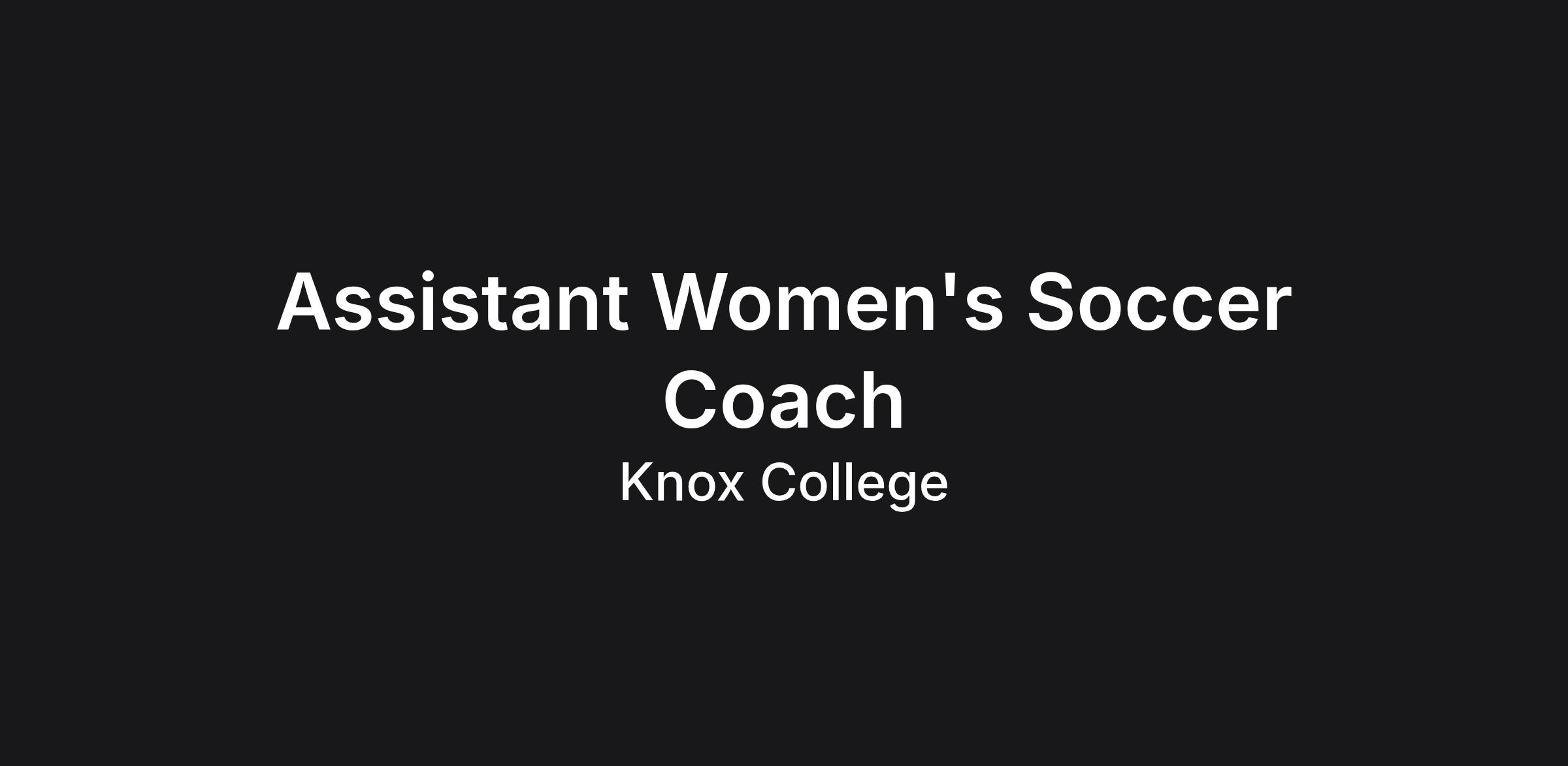 Knox College invites applications for the position of Assistant Women’s Soccer Coach, a full-time 12-month, benefits-eligible position reporting to the Head Women’s Soccer Coach. The successful candidate is expected to actively contribute to student?athlete development, academic success, and competitive performance while helping to elevate an NCAA Division III program built on accountability, growth, and competitive purpose.