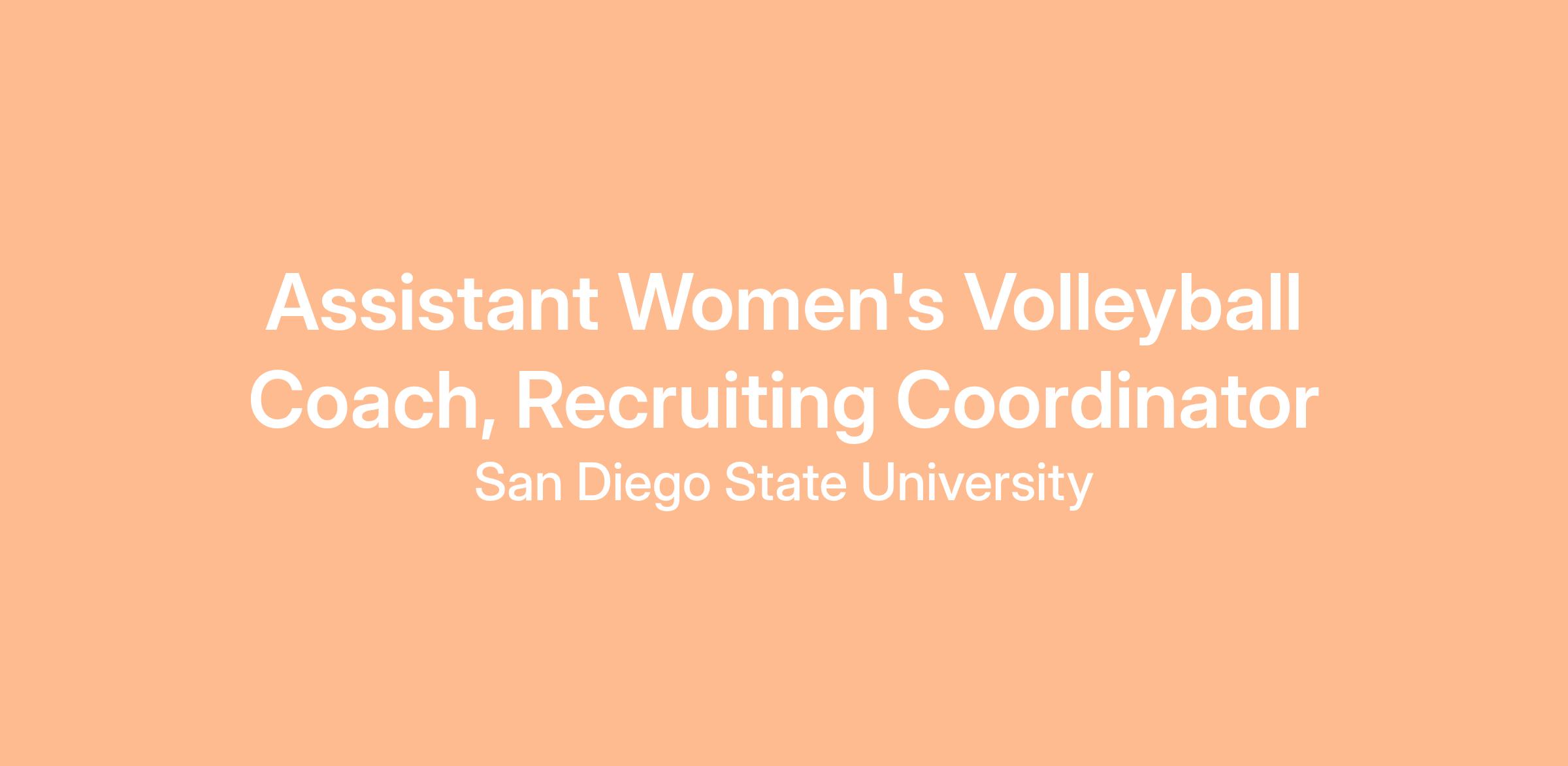 San Diego State University Athletics is seeking an enthusiastic and highly skilled Assistant Women’s Volleyball Coach this role is responsible for assisting in all aspects of coaching, teaching, recruiting, program administration, and student-athlete development. The Assistant Coach plays a vital role in shaping the team’s on-court performance, enhancing recruiting operations, coordinating video/statistical analysis, and fostering a positive, student-centered environment that aligns with the mission of SDSU Athletics.