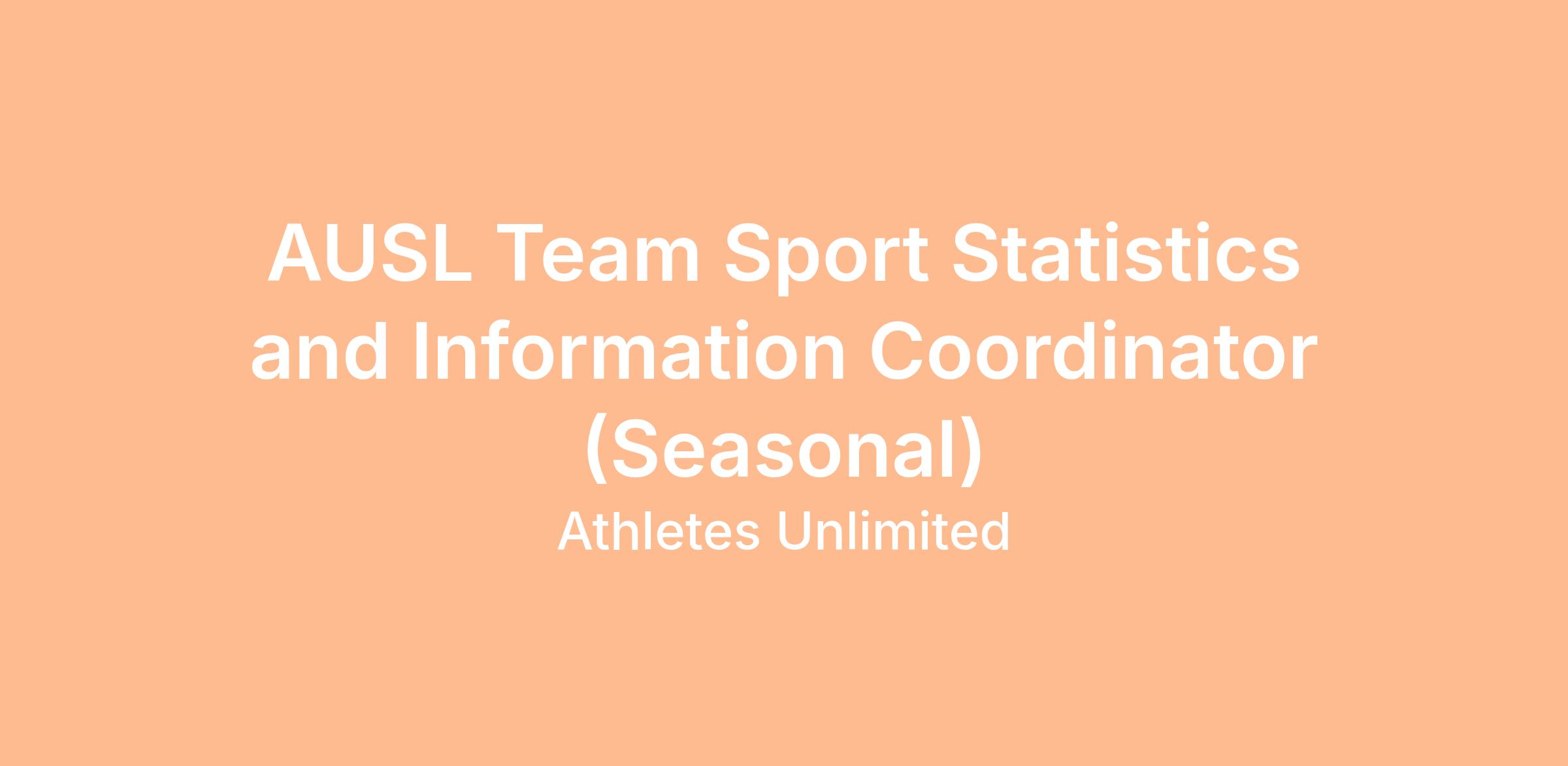 The AUSL is hiring six (one per team) Team Sport Statistics and Information Coordinators to act as communications liaisons. This seasonal, hybrid position reports to the Director of Sport Statistics and Information. The Coordinator will be expected to be on-site for all of the team’s home games and will work remotely during away games.
