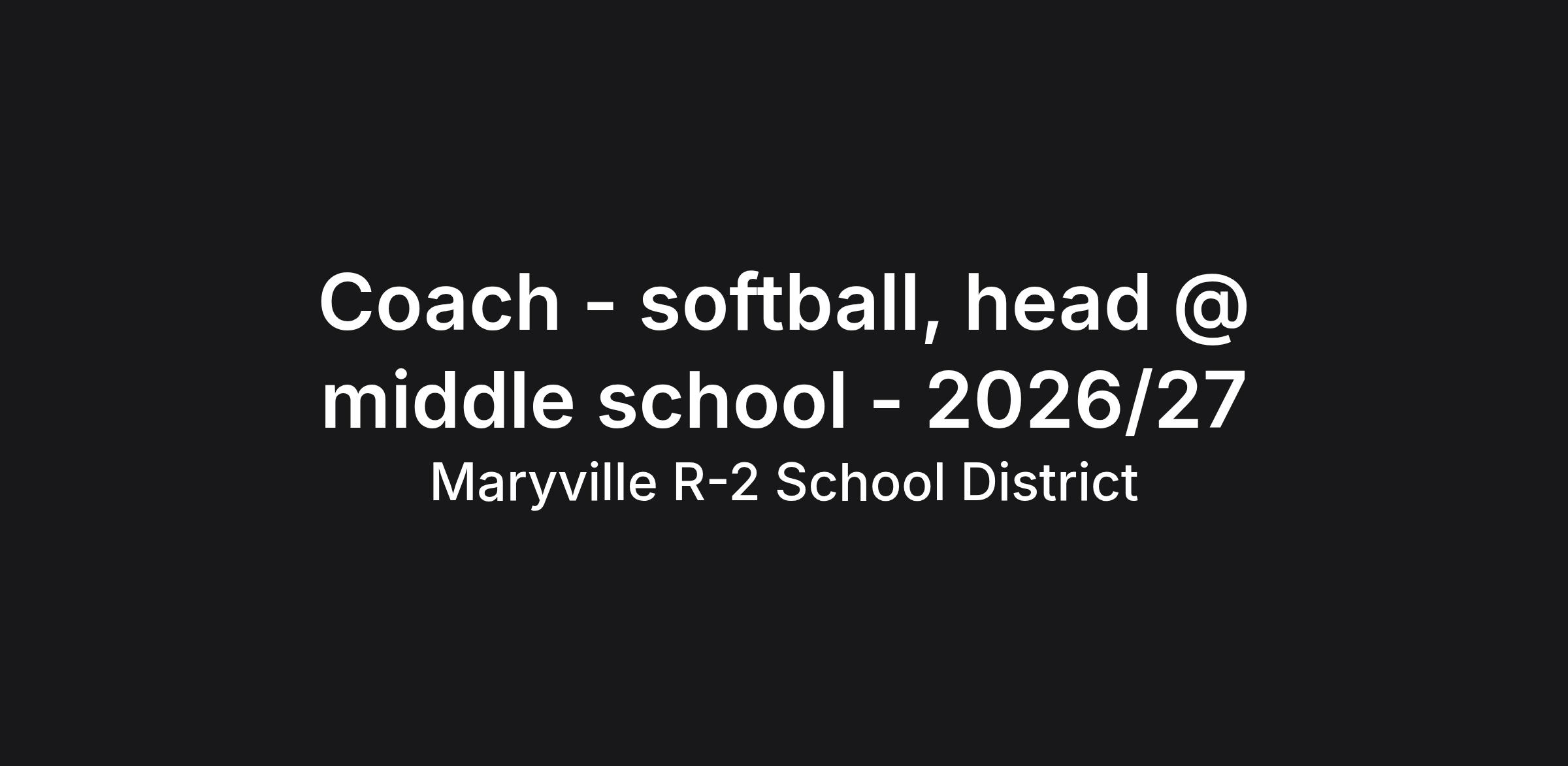 Softball head coach at Maryville Middle School for the 2026/27 season.
