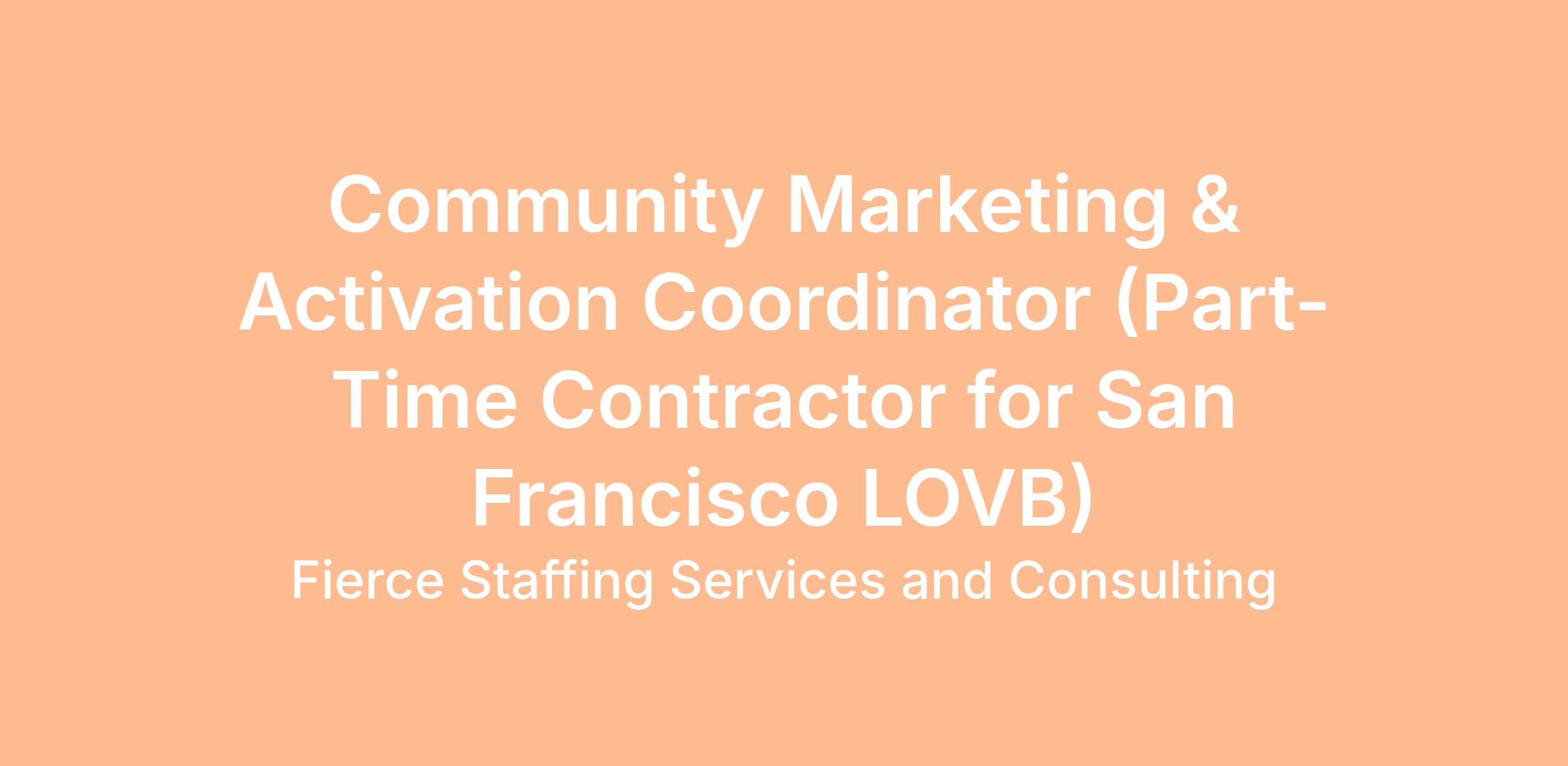 Fierce Staffing, on behalf of League One Volleyball (LOVB), is seeking a dynamic, organized, and community-driven Community Marketing & Activation Coordinator to support the launch and growth of the new San Francisco LOVB team. This part-time contract role is an exciting opportunity to help build the LOVB fan base in the Bay Area through grassroots marketing, community engagement, watch parties, and street team activations.