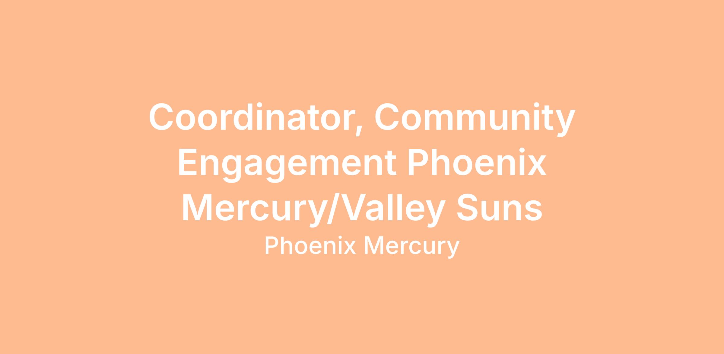 Coordinator, Community Engagement Phoenix Mercury/Valley Suns