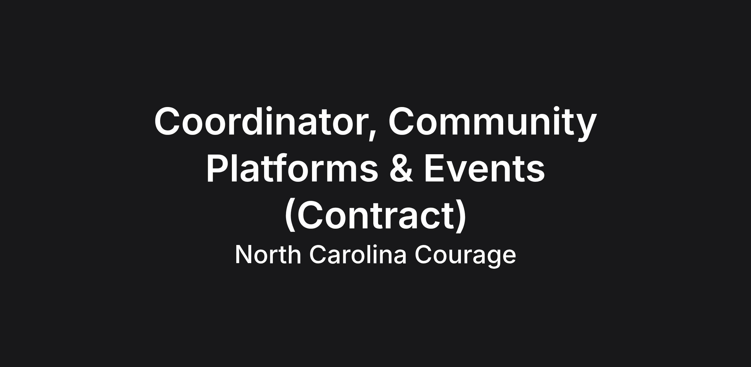 The North Carolina Courage, a member of the National Women’s Soccer League (NWSL), is seeking a Coordinator, Community Platforms & Events (Contract).