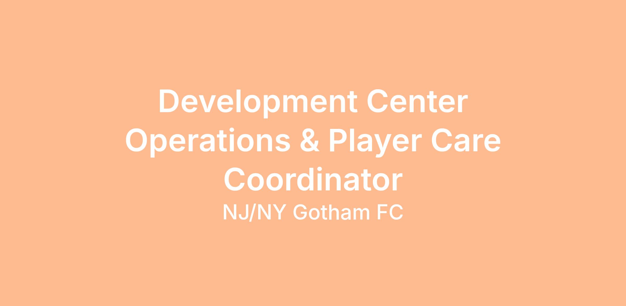 Development Center Operations & Player Care Coordinator