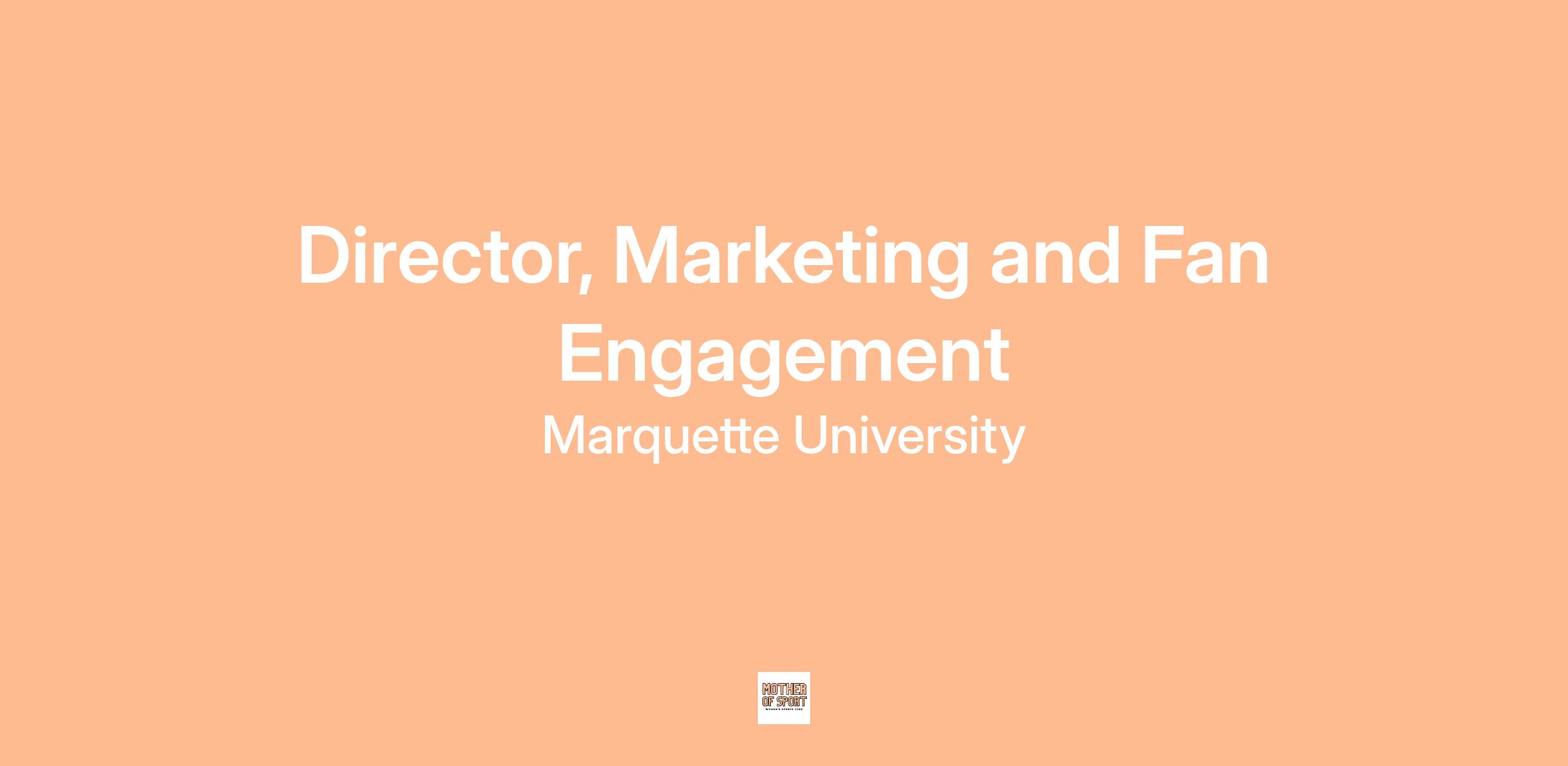 Be The Difference Begins with Great People. ? Are you looking for a new opportunity where you can make the difference in the lives of students and faculty? We’re always looking for highly talented individuals to join our team – people who think big, care deeply, and believe in being the difference in their work and community.? We prioritize student success, access to education, and service in our work to educate well-rounded servant leaders who transform their fields, our society and the world. Our Catholic, Jesuit approach emphasizes student engagement with the world around them and formation of the heart and mind. We believe in our mission: The search for truth, the discovery and sharing of knowledge, the fostering of personal and professional excellence, the promotion of a life of faith, and the development of leadership expressed in service to others. These core values guide our relationships with our students, each other, and our community. Marquette University offers a rich and competitive Total Rewards package including? medical, dental, vision, 403(b) with up to 8% university match, generous time off package, and tuition benefits for employees, spouses, and dependents with no payback requirement!? For more information, please view the Total Rewards Guide . This is your next opportunity to join an organization that invests in their employees’ career journey by diversifying their skills, deepening their expert knowledge, encouraging a healthy work-life balance, focusing on personal wellbeing, providing leadership training, and sustaining a culture of respect and inclusion. The Director, Marketing and Fan Engagement is responsible for all aspects relative to the marketing and game day experience for fans attending Marquette athletics events.