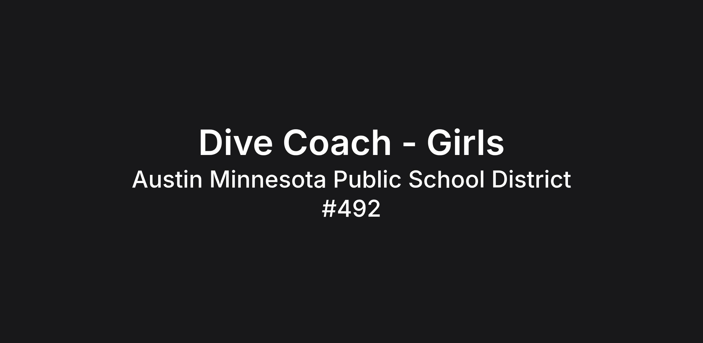 The Austin High School Activities department is currently looking for a Girl's Diving Coach