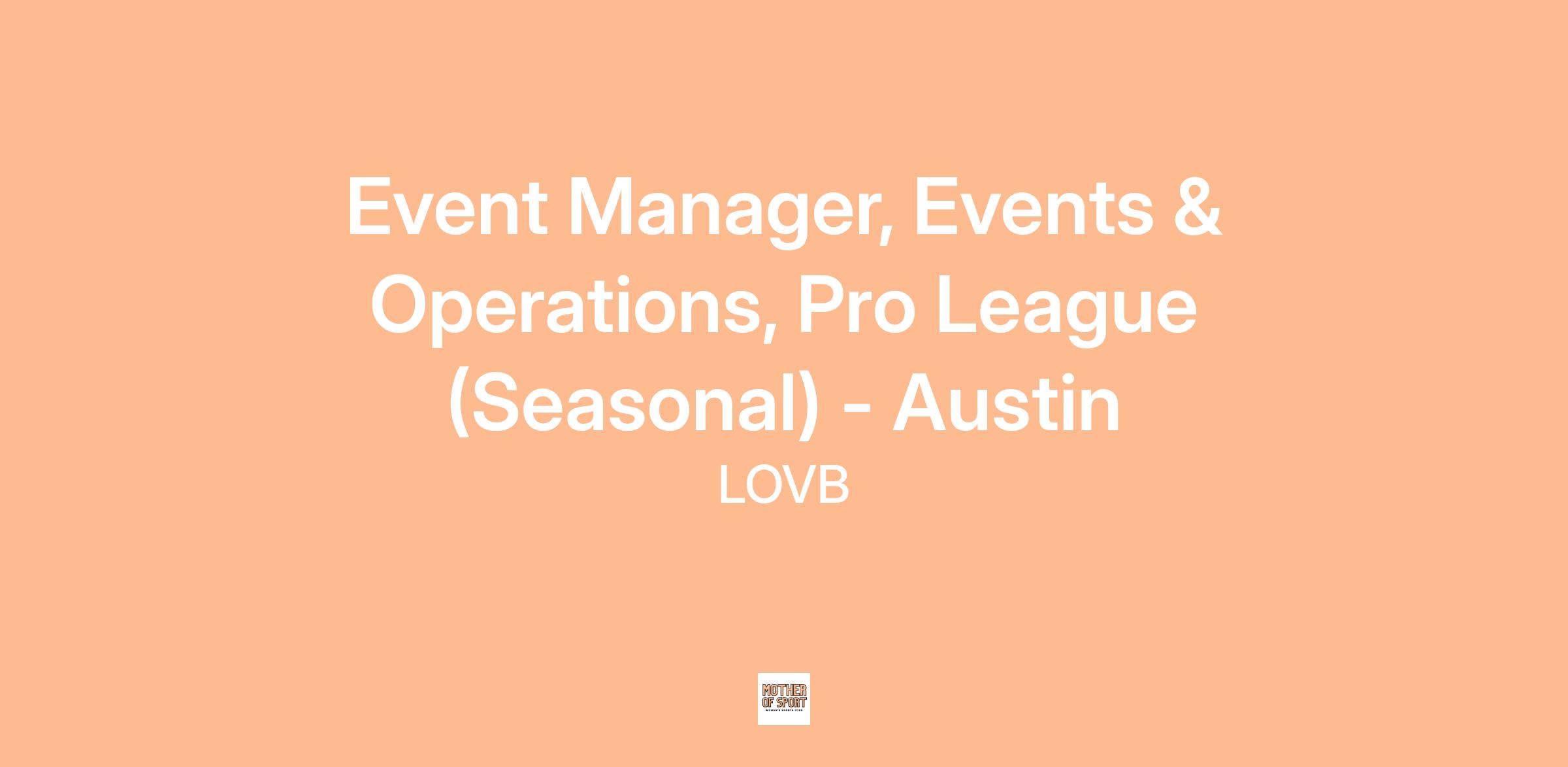 Event Manager, Events & Operations, Pro League (Seasonal) - Austin, TX