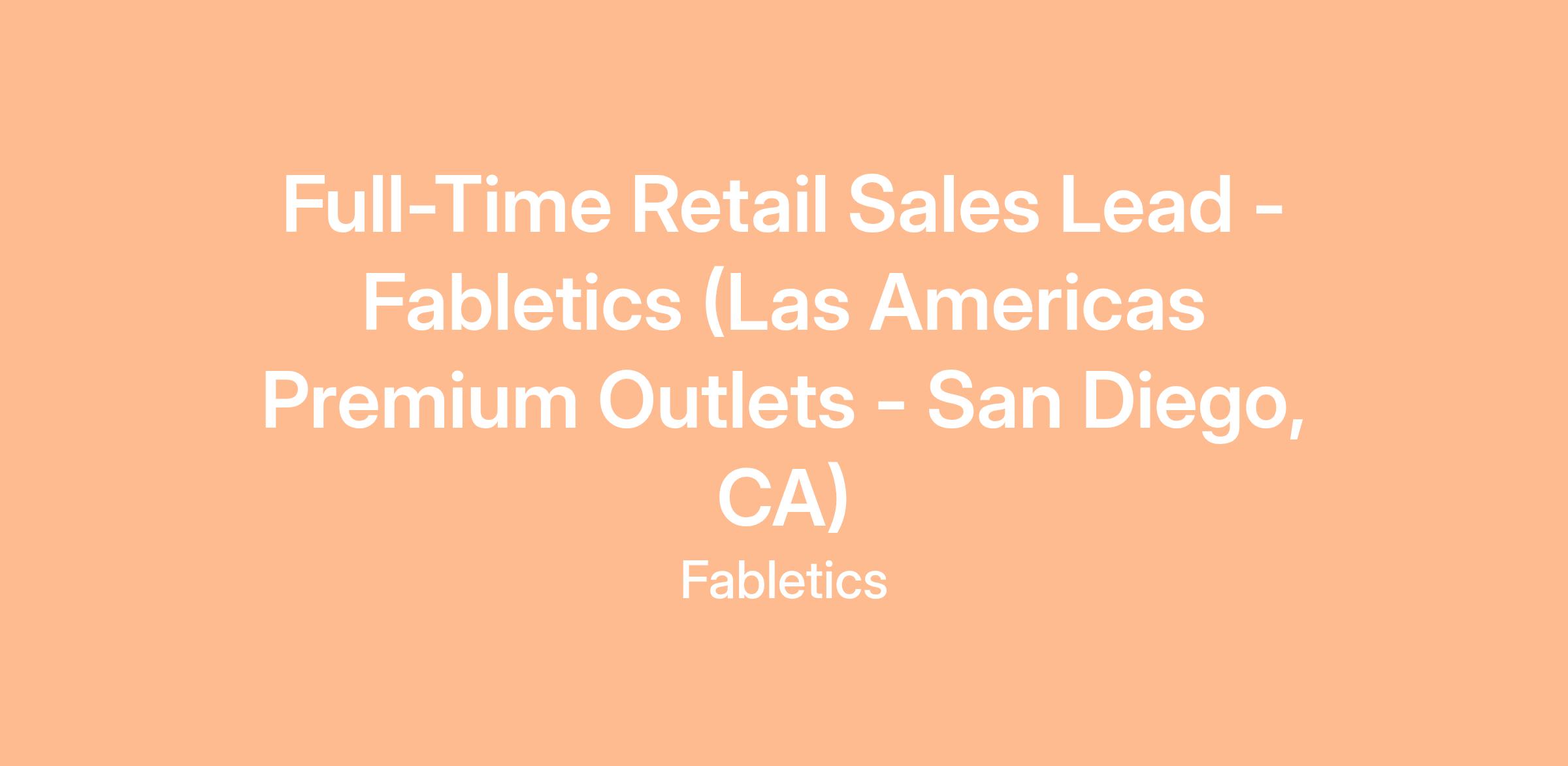 Fabletics is currently looking for a Full-Time Sales Lead for our retail store at Las Americas in San Diego, CA!