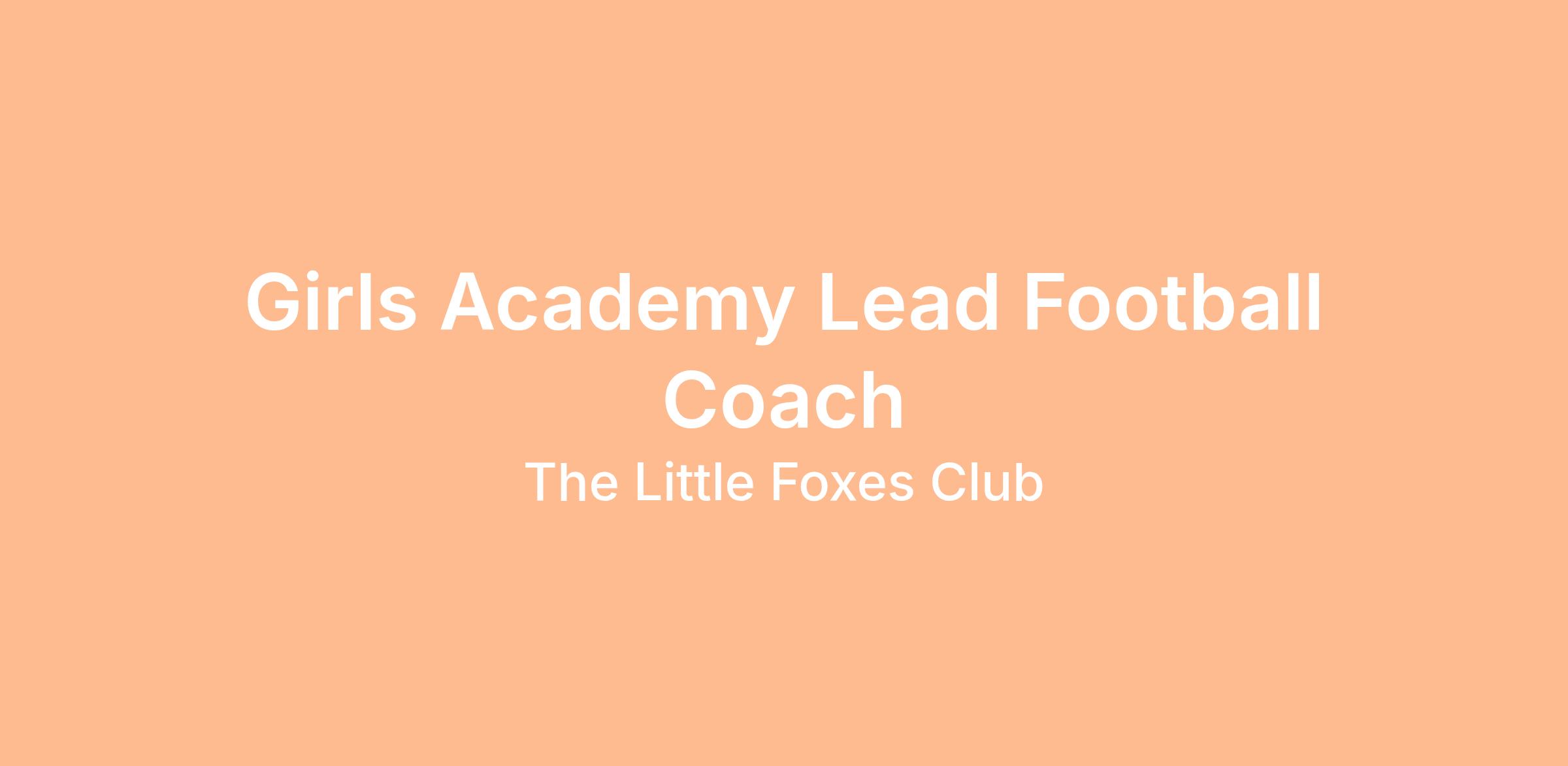 Girls Academy Lead Football Coach – Foxes FC Academy