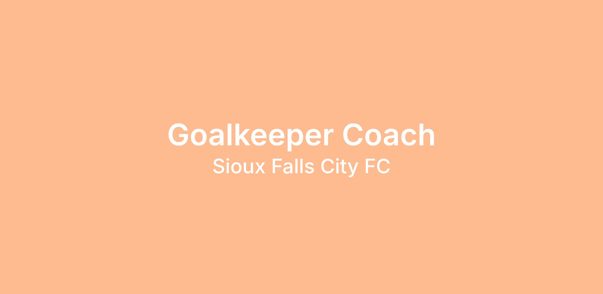 Sioux Falls City FC is seeking a Goalkeeper Coach to lead the development, integration, and performance of our goalkeepers within the SFCFC game framework. A USL W league team, we take pride in setting the standard on the pitch, and in our community.