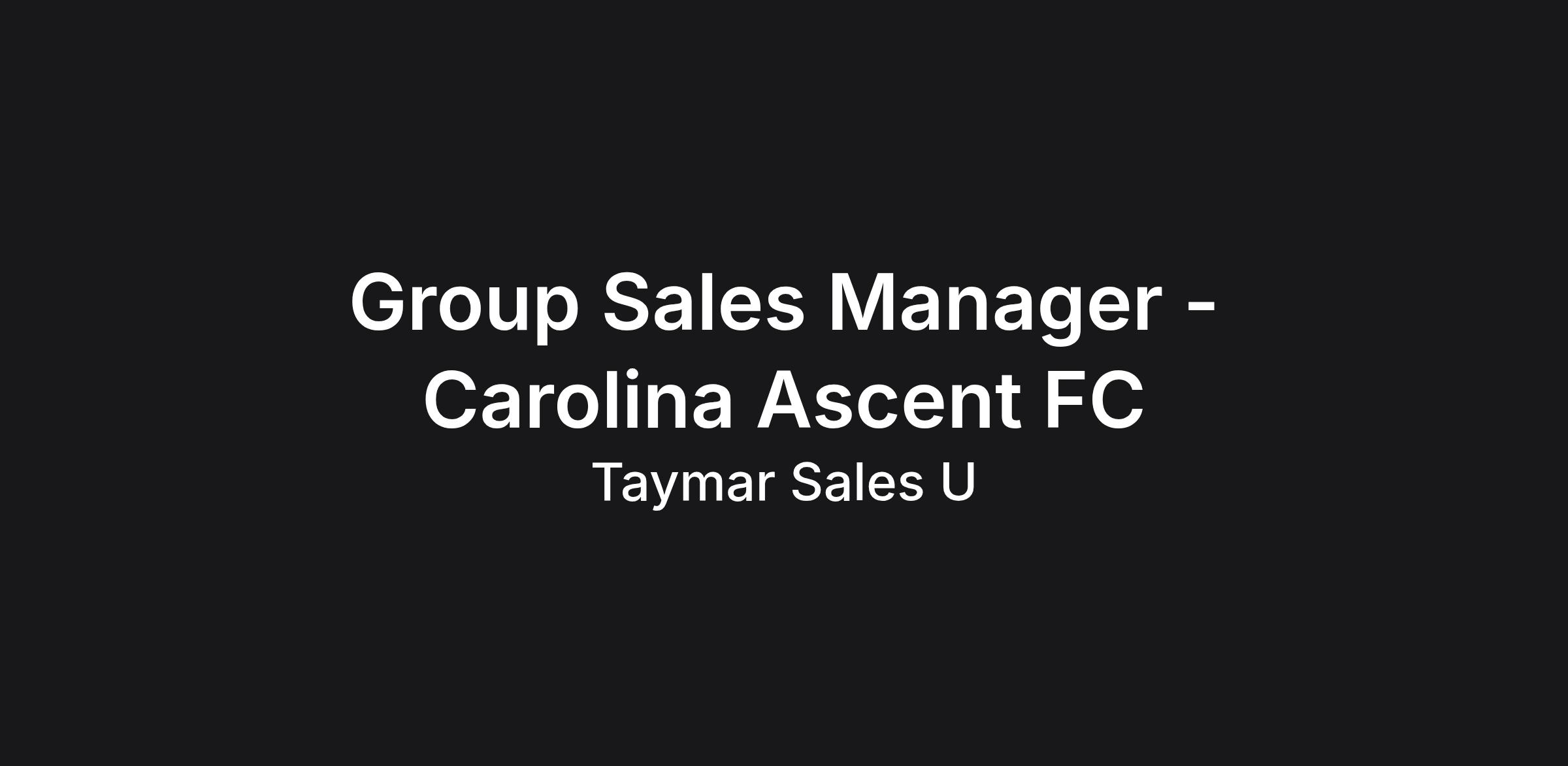 Taymar Sales Pro Carolina Ascent FC Group Sales Manager position will learn and expand his/her knowledge of the fundamentals of the sales process through group sales, new season ticket sales, and renewals across both USL League One and USL Super League teams. The Group Sales Manager position will receive training and development and be provided the opportunity for rapid career advancement to senior-level sales roles and leadership positions with added responsibility.