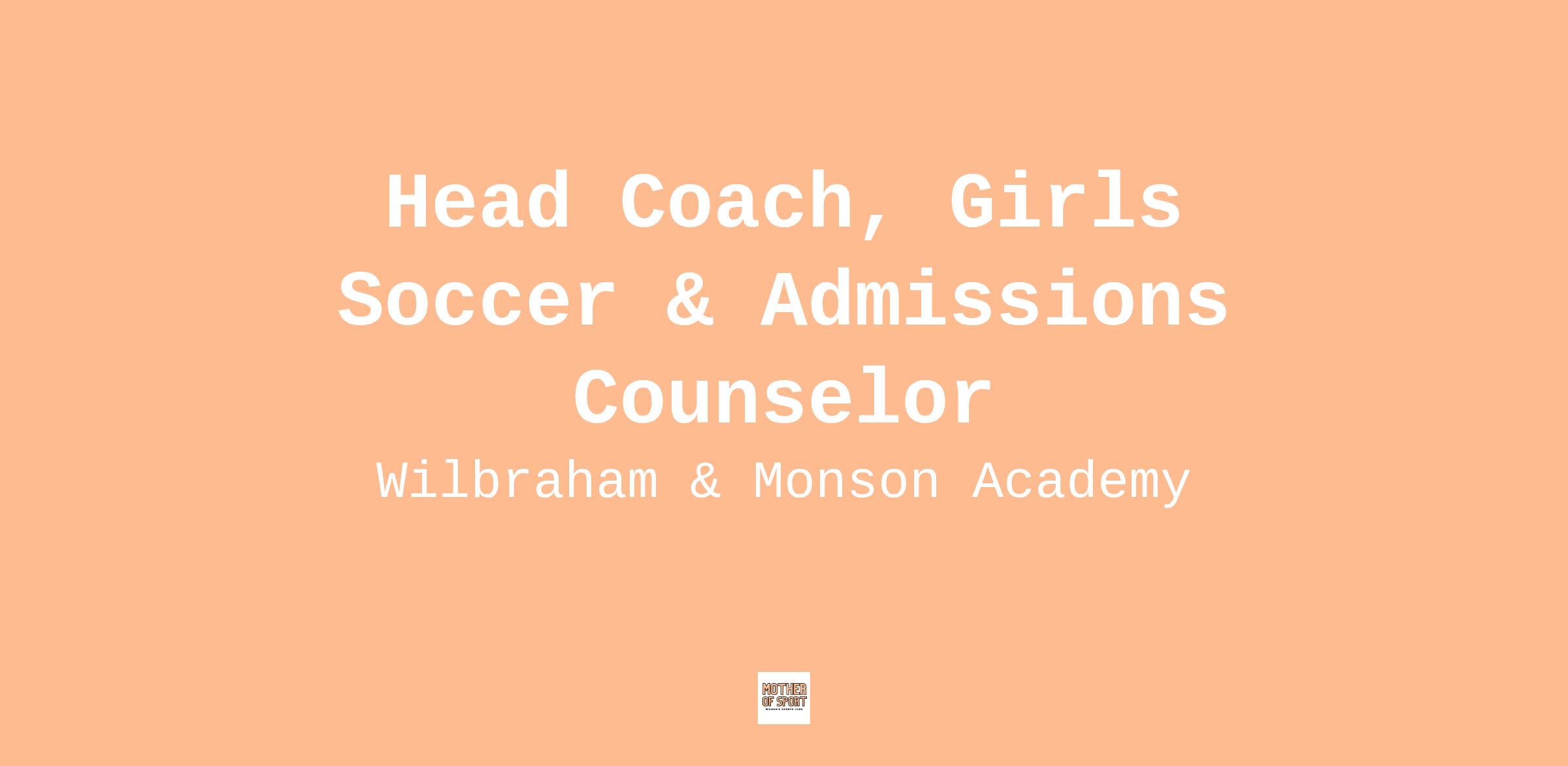 Wilbraham & Monson Academy (WMA) seeks an energetic and experienced Head Coach for Girls Soccer to take the program to the next level of competition. This dual role combines coaching expertise focused on athletic recruitment and program development with comprehensive admissions support responsibilities. Contributing to institutional enrollment goals through family relationship management, administrative support, and general admissions activities with an emphasis on building a competitive soccer program.