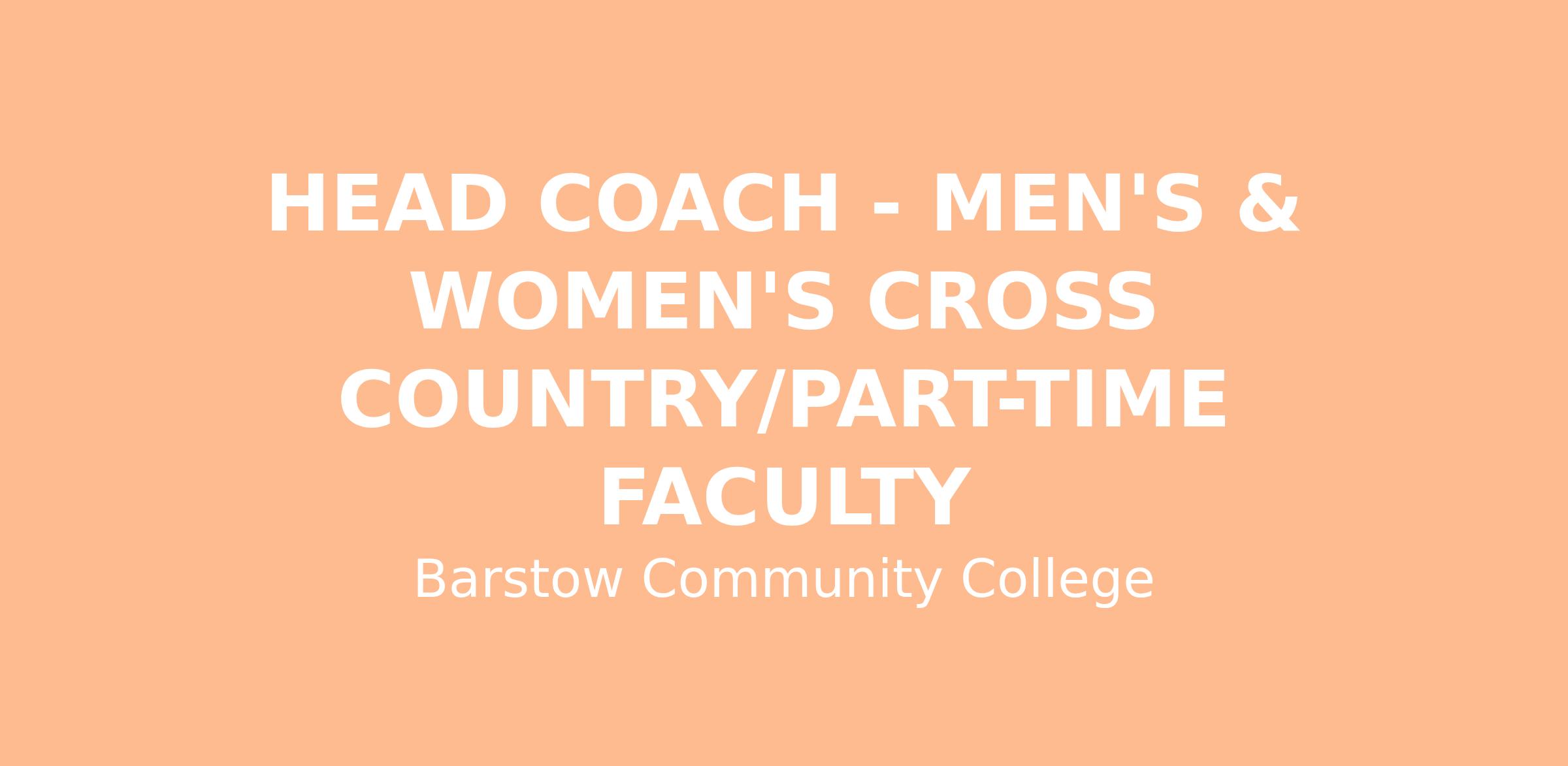 To apply, please visit https://www.schooljobs.com/careers/barstowcc/jobs/5276800/head-coach-mens-womens-cross-country-part-time-faculty