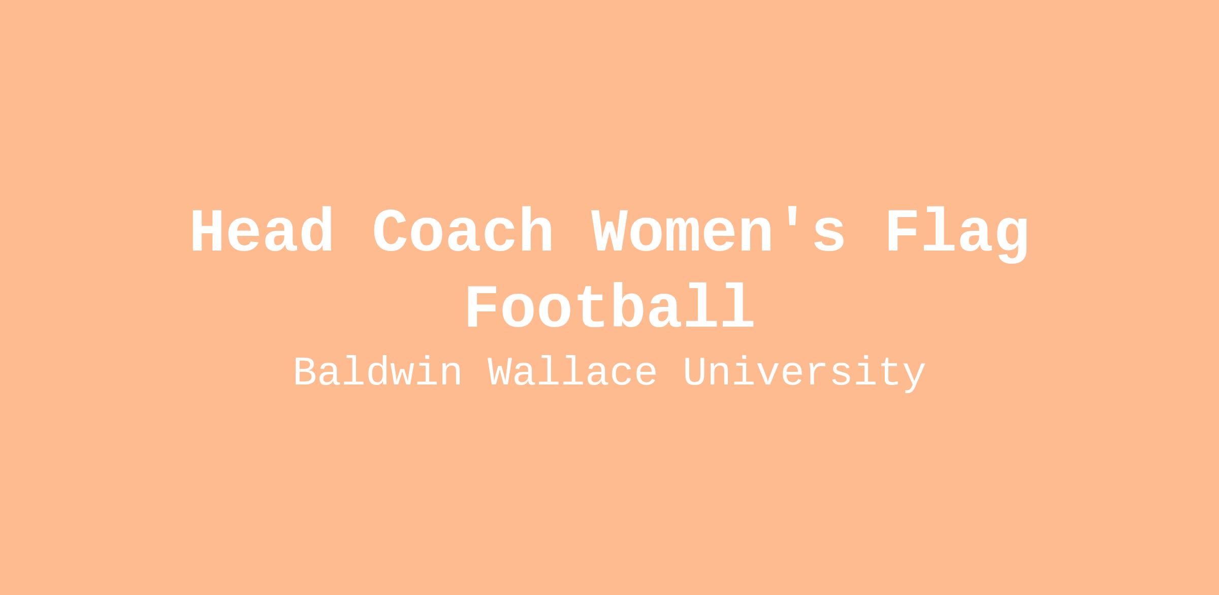 Berea, Ohio, Baldwin Wallace University seeks a dynamic and visionary leader to serve as the inaugural Head Women’s Flag Football Coach. This coach will launch and lead BW’s 29th varsity sport beginning in 2026. The position oversees all aspects of the women’s flag football program, including recruitment and retention of student-athletes, practice planning, game strategy, skill development, academic monitoring, and the creation of a competitive and positive team culture. The head coach will play a critical role in building the program’s foundation and ensuring it reflects the mission and values of Baldwin Wallace University and NCAA Division III. This is a full-time, exempt position within Athletics. Essential Tasks, Duties and Responsibilities: The following outlines the essential functions of the position and is not to be considered a detailed description of all duties inherent in the position.