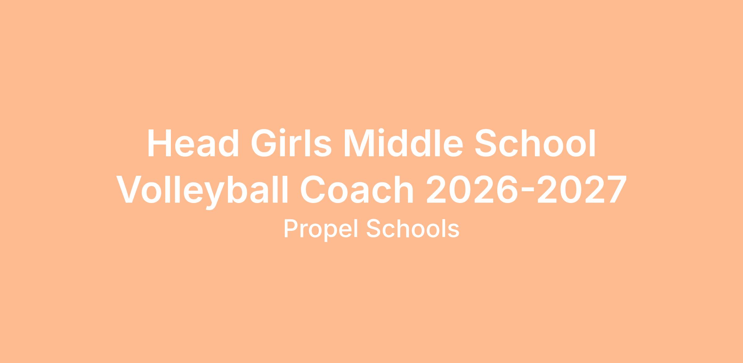 Propel Schools is seeking a Head Middle School Girls Volleyball Coach for the 2026-2027 season at the following middle schools: