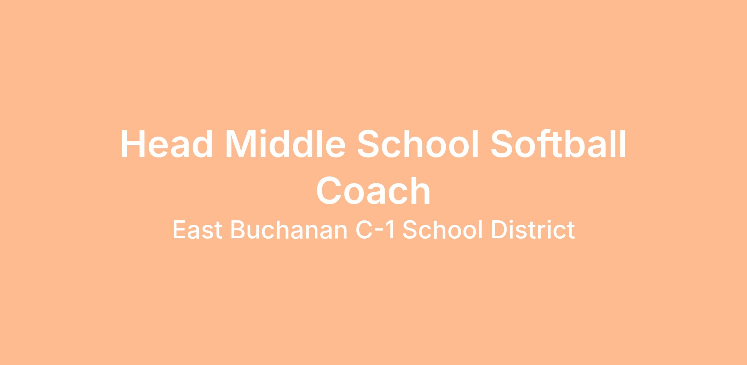 East Buchanan C-1 has an opening for the 2026-2027 school year for head middle school softball coach. For more information, contact Doug Miller at miller@ebs.k12.mo.us of (816) 424-6460.