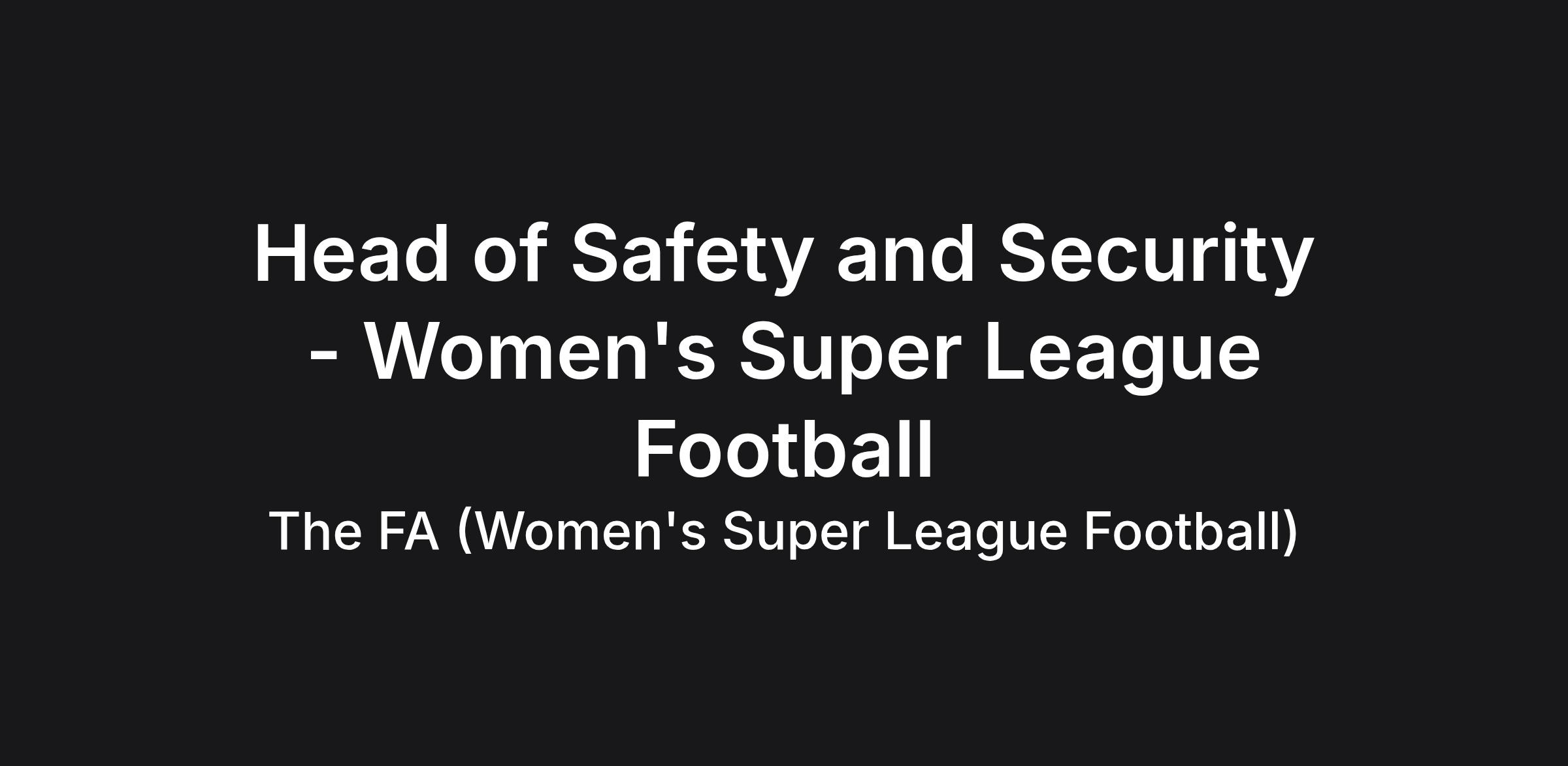 Women's Super League Football has an exciting opportunity for a Head of Safety and Security. This key senior role will lead the delivery and continuous improvement of the League's matchday safety and security strategy. Working collaboratively with clubs, governing bodies, and external stakeholders, the role ensures the highest standards of safety and compliance across all women's football operations. The postholder will provide strategic leadership on safety and security matters and serve as the League's subject-matter expert, advising senior leadership on emerging risks, trends, and best practices. In addition, the post holder will oversee and develop the League's Match Observer Programme.