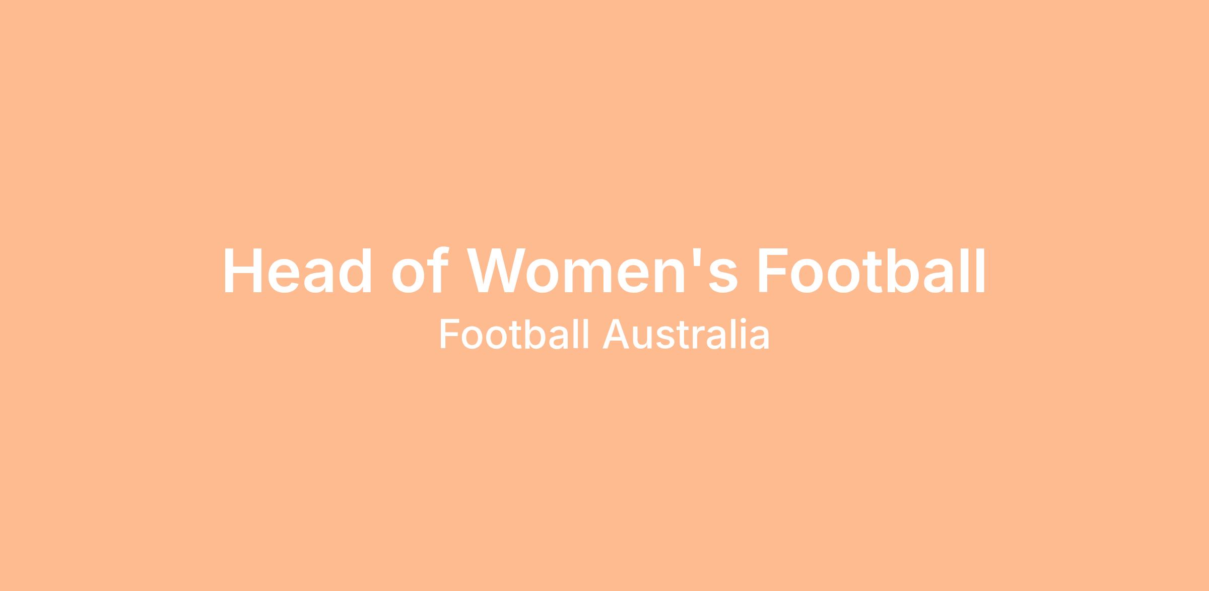 ABOUT THE ROLE The Head of Women's Football is a senior leader within the Football Department, responsible for providing technical leadership, strategic oversight and driving system alignment across participation, pathways and performance environments in women's football. The role operates within a system-focused model, working collaboratively to deliver aligned, high-quality football outcomes. The role exists to strengthen access, progression and depth across the women's football ecosystem, applying deep expertise in player development and talent identification to build sustainable capability and long-term performance. It focuses on aligning environments, improving development quality and supporting clear, equitable pathways from entry-level participation through to elite performance. Working as part of the Football Department leadership team, the Head of Women's Football contributes to whole-of-football strategy, shared decision-making and collective accountability for system performance and international competitiveness.