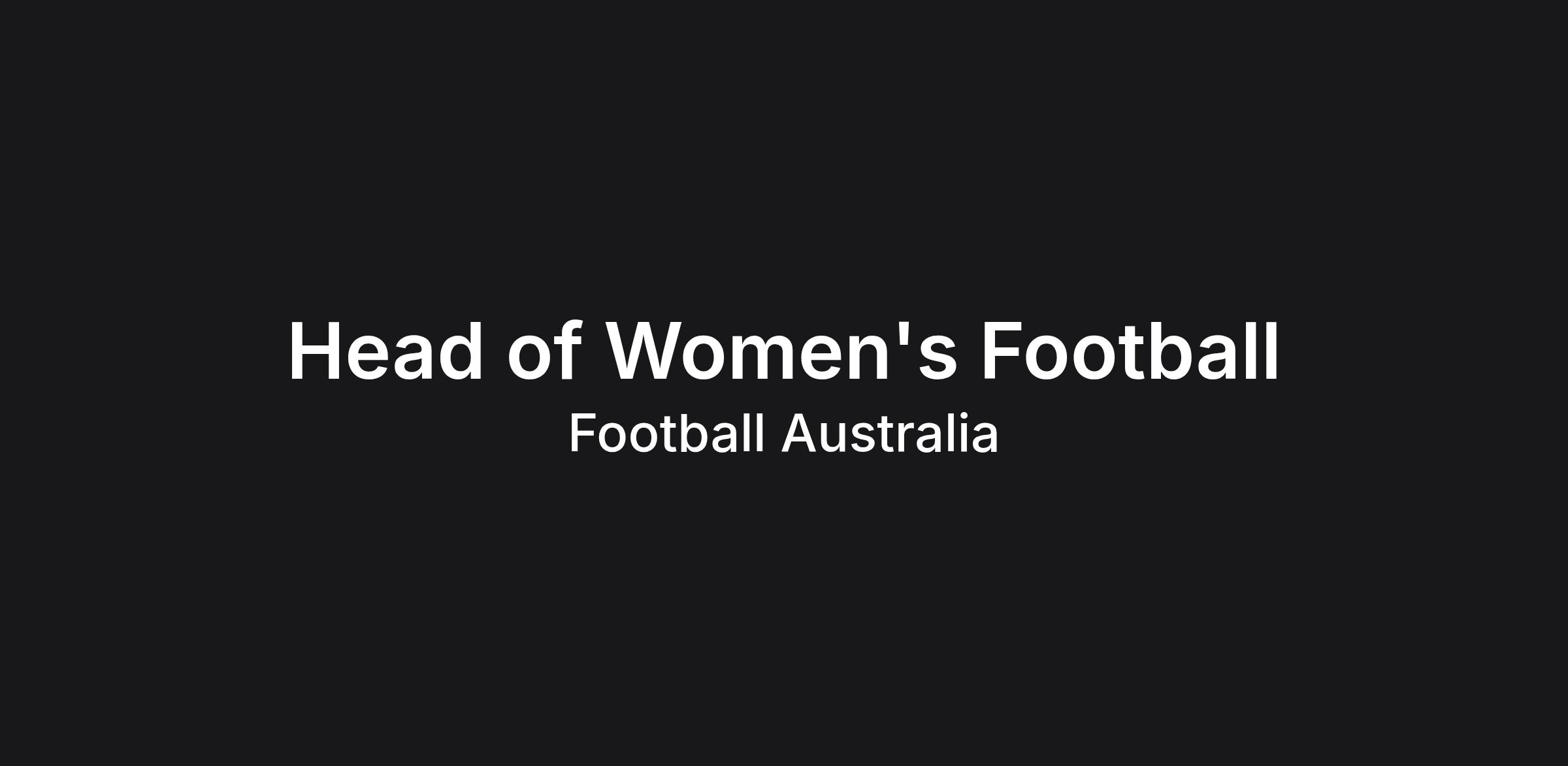 The Head of Women's Football is a senior leader within the Football Department, responsible for providing technical leadership, strategic oversight and driving system alignment across participation, pathways and performance environments in women's football. The role operates within a system-focused model, working collaboratively to deliver aligned, high-quality football outcomes. The role exists to strengthen access, progression and depth across the women's football ecosystem, applying deep expertise in player development and talent identification to build sustainable capability and long-term performance. It focuses on aligning environments, improving development quality and supporting clear, equitable pathways from entry-level participation through to elite performance. Working as part of the Football Department leadership team, the Head of Women's Football contributes to whole-of-football strategy, shared decision-making and collective accountability for system performance and international competitiveness.