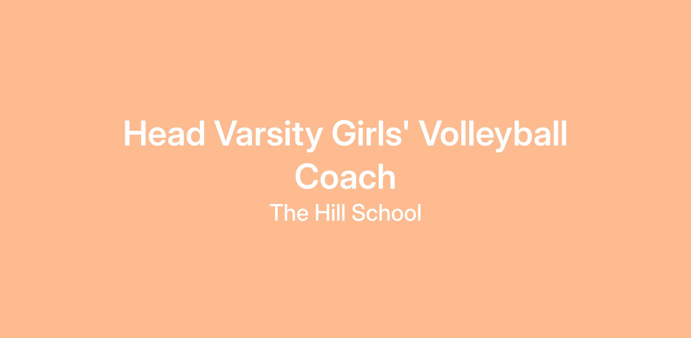 Reporting to our Director of Athletics, the inaugural head coach will be responsible for a newly established Girls' Volleyball program. All Hill head coaches will ensure that their programs serve to further promote the values we teach our students in all areas of school life. The integral work and leadership of our head varsity coaches is essential to the success of our athletic teams but also toward the fulfillment of the School's mission to prepare students fully for college, careers, and life.