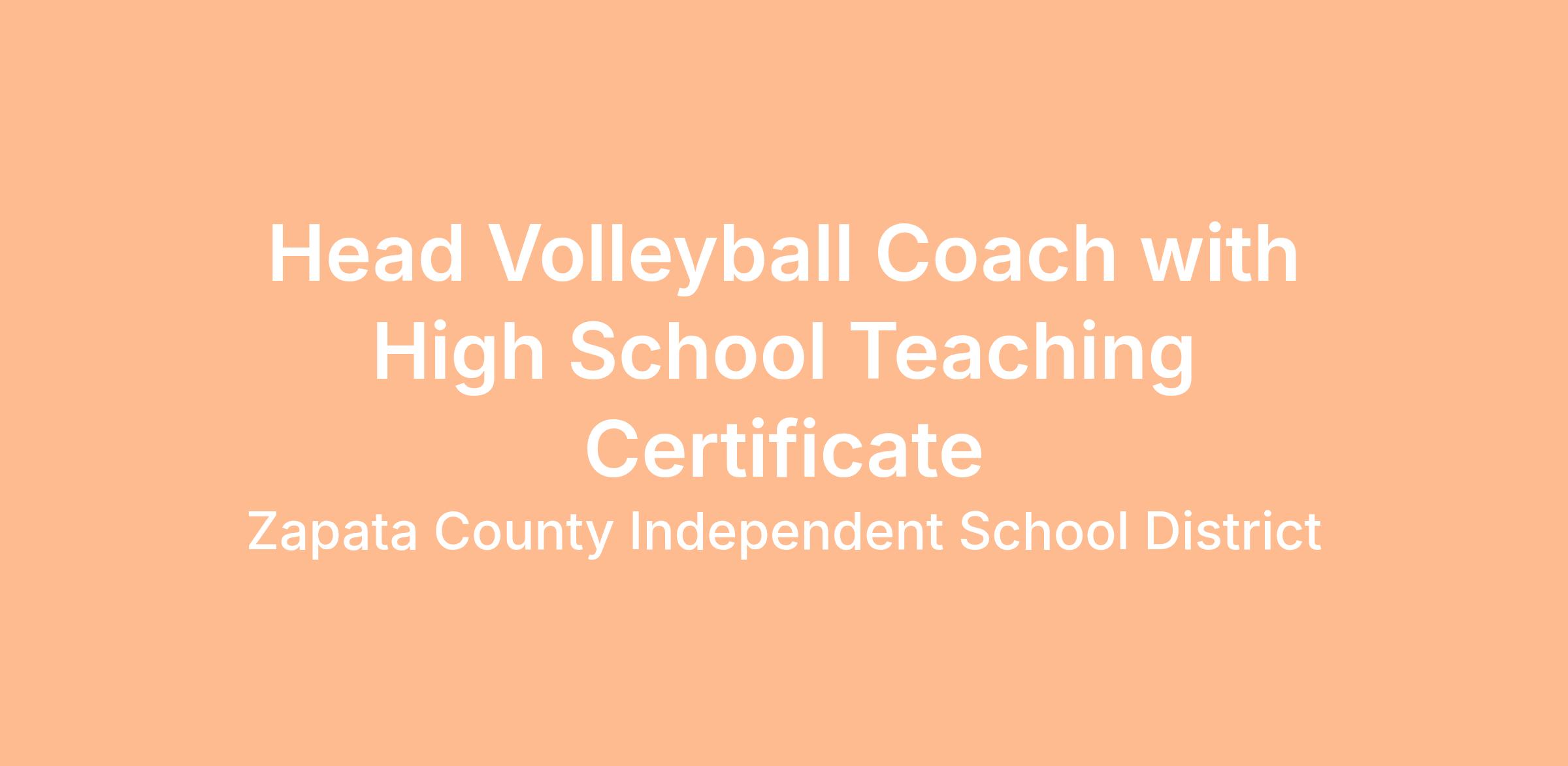 Position: | Head Volleyball Coach with High School Teaching Certificate | ||