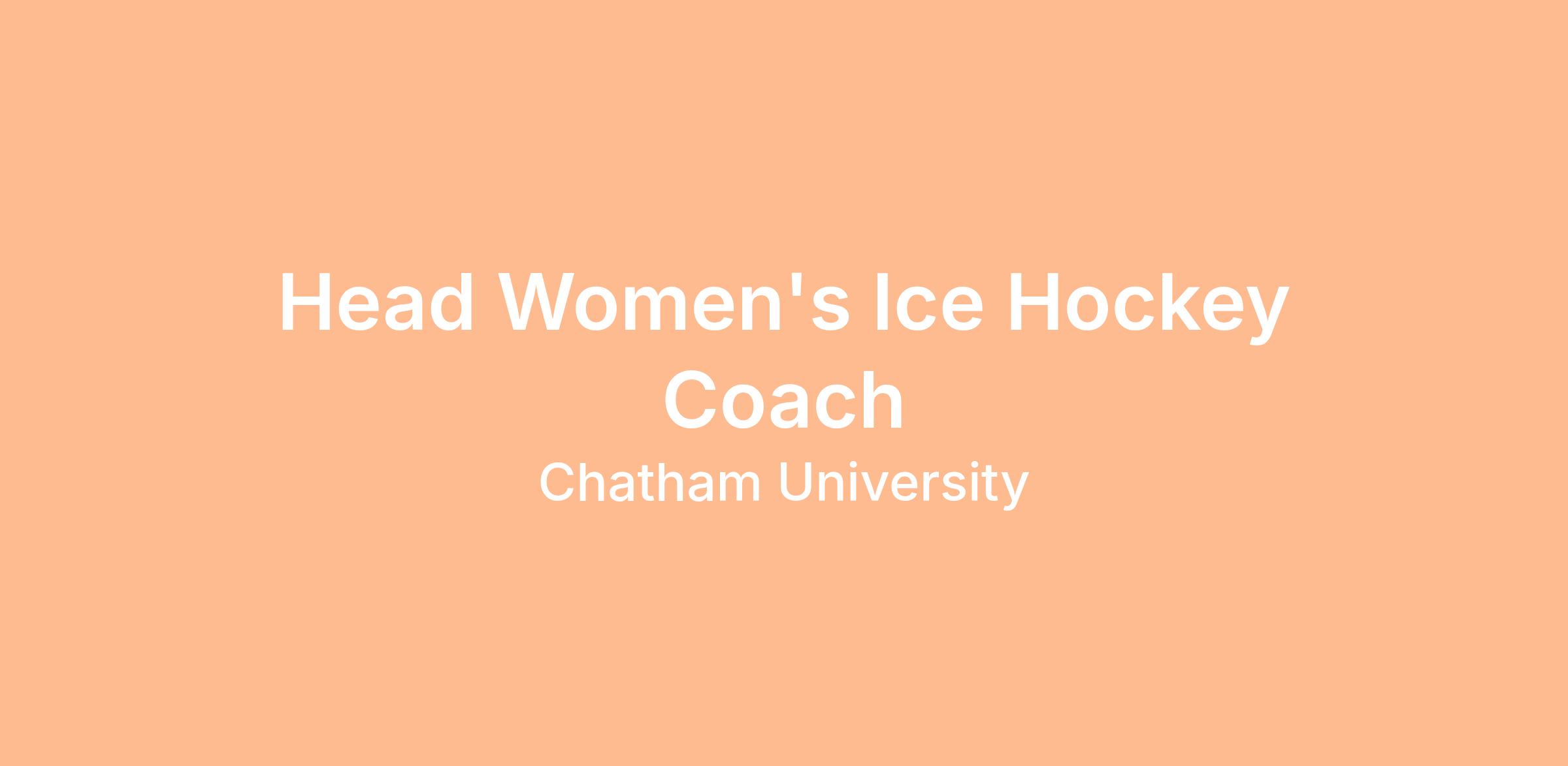 The Head Women's Ice Hockey Coach, a member of the administrative staff of Chatham University, reports to the Athletics Director. This position directly supervises the assistant coaches, student support personnel and student athletes.