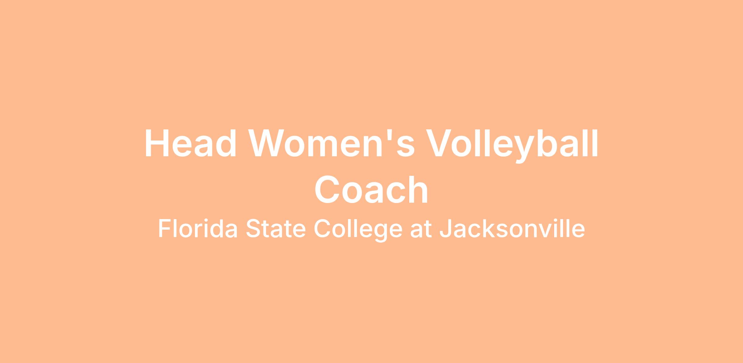 Jacksonville, Florida, Florida State College at Jacksonville is seek a Women's Volleyball Head Coach. The Head Coach - Women's Volleyball provides leadership, supervision, and coaching to an intercollegiate athletic team of the College. The Head Coach directs efforts in building support for athletic advancement through efforts such as fundraising and community engagement. This position also assists with the facilitation and coordination of various functions associated with athletic communications, facilities, fitness, eligibility, advancement, outdoor education center use, and/or program advancement and engagement. At a minimum the selected candidate must have an associate degree from a regionally accredited institution supplemented by a minimum of three (3) years of related coaching experience. Additionally the preferred candidate will have a bachelor degree from a regionally accredited institution supplemented by a minimum of five (5) years of related coaching experience.
