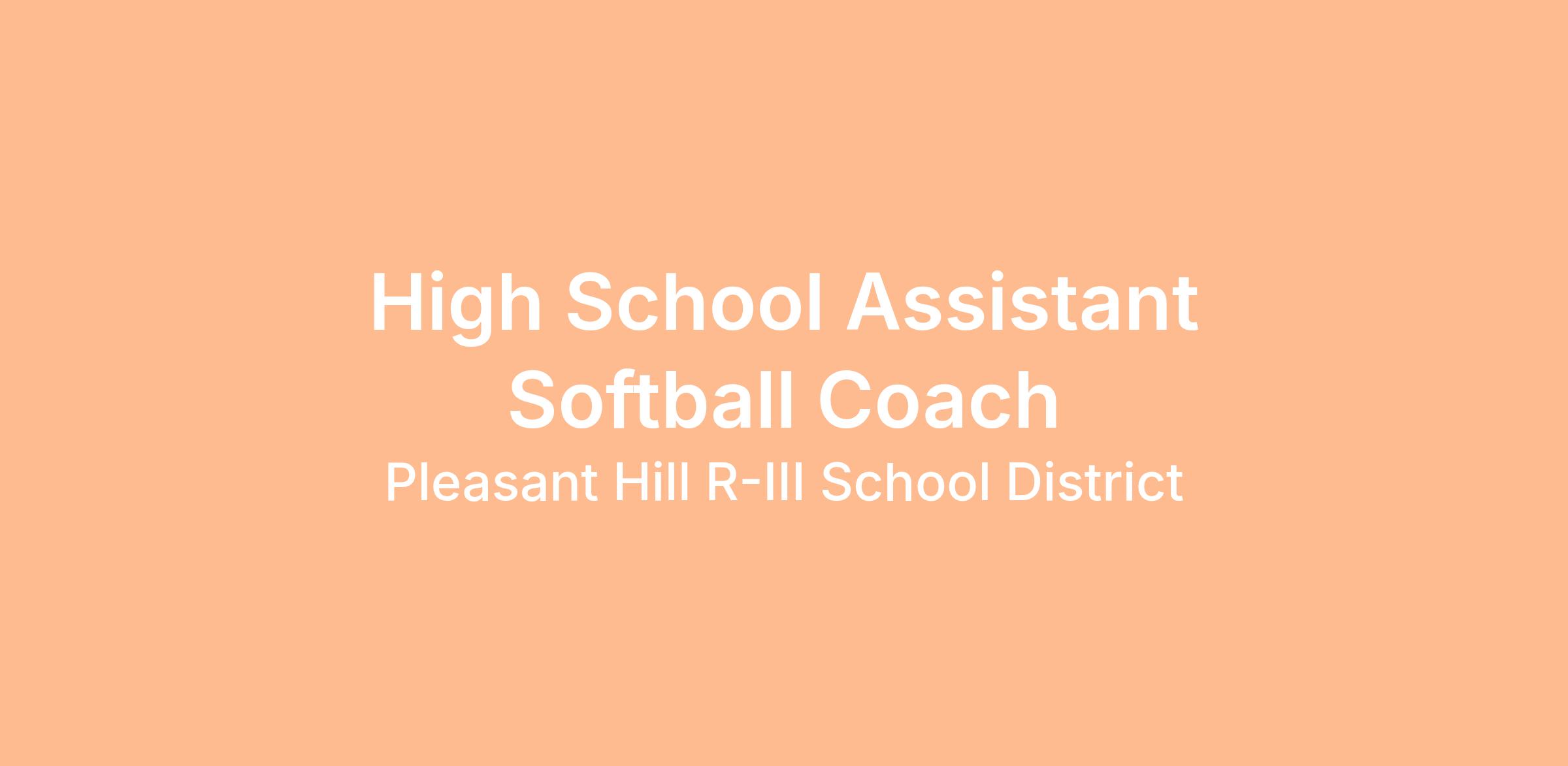 Pleasant Hill High School is seeking candidates for the position of Assistant Softball Coach for the 2026 season.