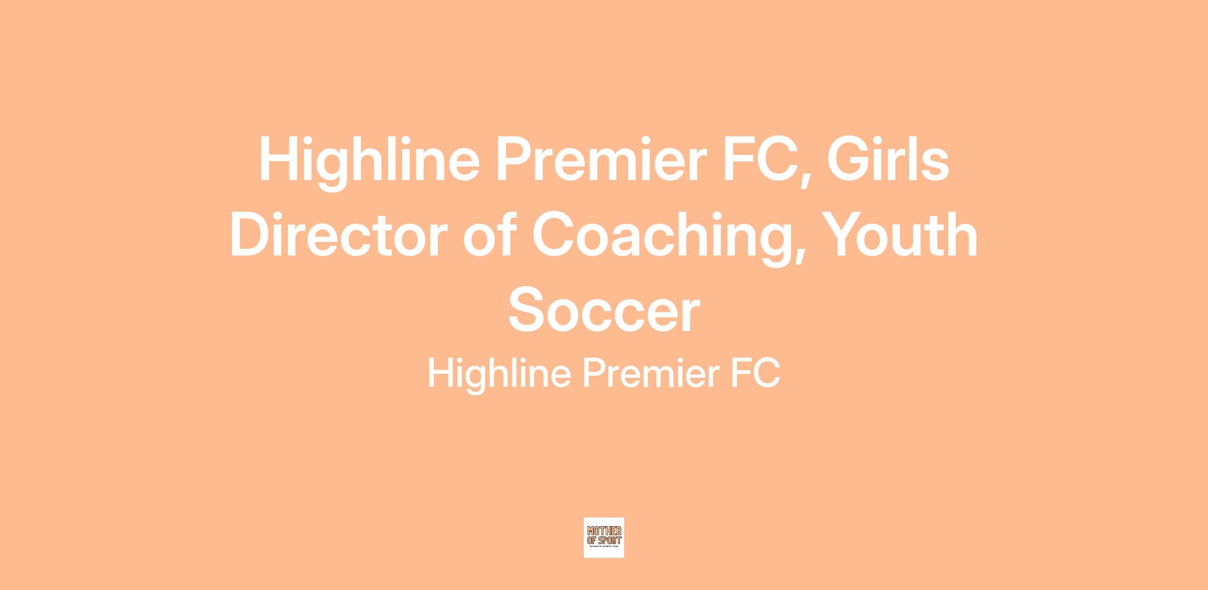 Highline Premier FC is seeking an experienced and passionate Girls Director of Coaching to lead and grow our competitive girls' soccer program. In conjunction with the Director of Coaching, this leadership role oversees all girls' teams, coaches and players while shaping the strategic vision and long-term growth of the program. The ideal candidate is a skilled coach, mentor and leader dedicated to empowering girls through soccer and advancing HPFC's mission.