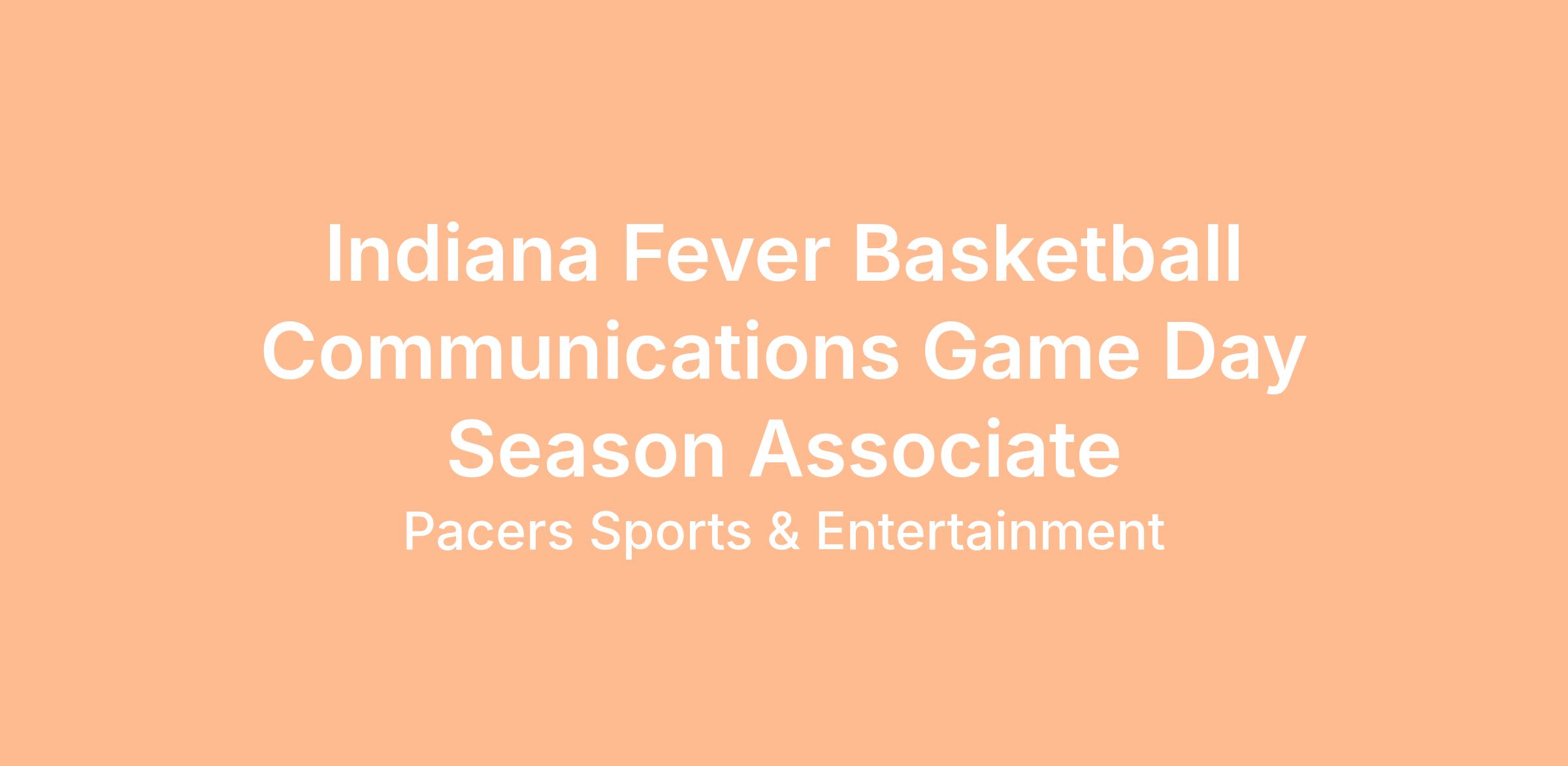 The Indiana Fever Basketball Communications Game Day Associate starts in late April and ends at the conclusion of the Fever season. Due to the game and event schedule, the Indiana Fever Basketball Communications Game Day Associate must have the availability to work a flexible schedule and all home games, which includes evenings and weekends.