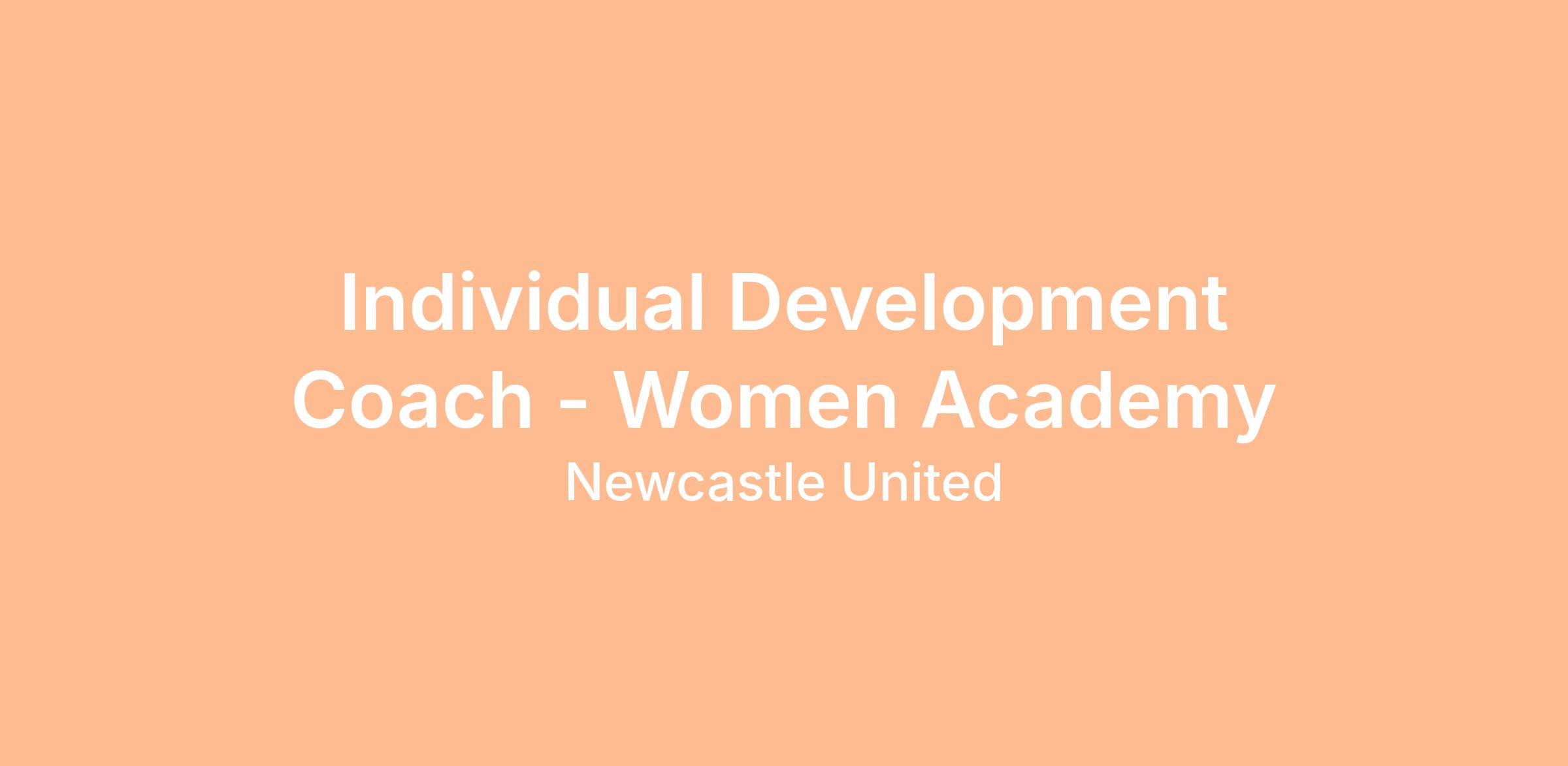Individual Development Coach · Newcastle United Individual Player Development Coach Newcastle United Women Academy Permanent Competitive Salary Closing Date: 15th April 2026 Turn potential into performance - helping young players thrive on and off the pitch. We are the heartbeat of the city. Newcastle United Women (NUW) is proud to be part of a progressive and ambitious football club with a clear vision for the women's and girls' game. Our Academy plays a vital role in developing talented young players within a safe, inclusive and high‑performance environment
