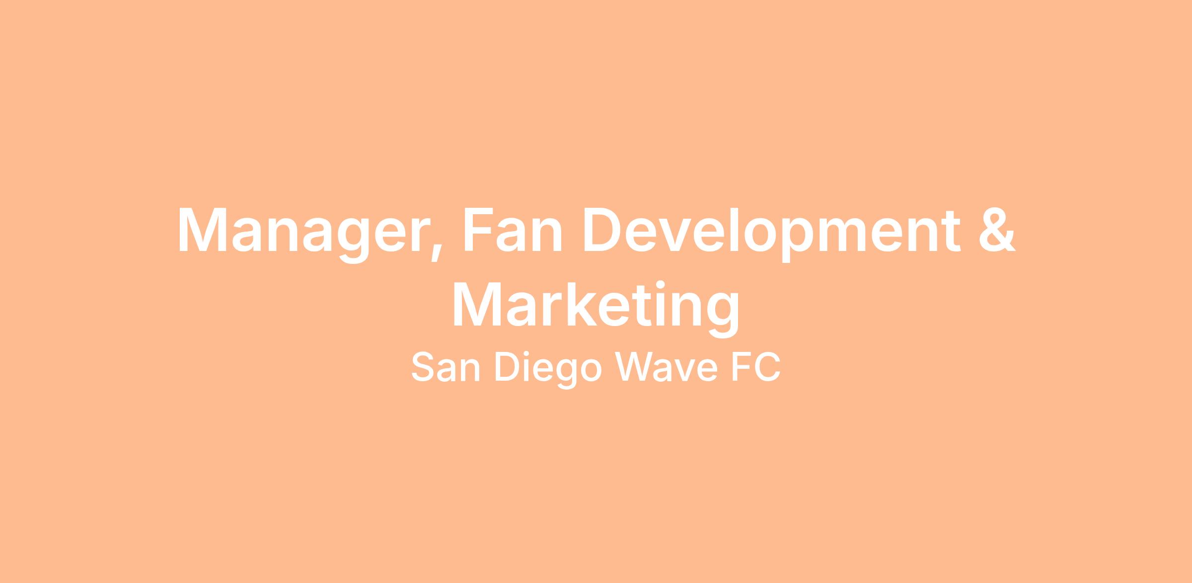 The Manager, Fan Development & Marketing is responsible for leading and executing grassroots marketing initiatives, traditional marketing, community activations, and local brand campaigns designed to grow the San Diego Wave FC fan base and drive ticket and merchandise sales.