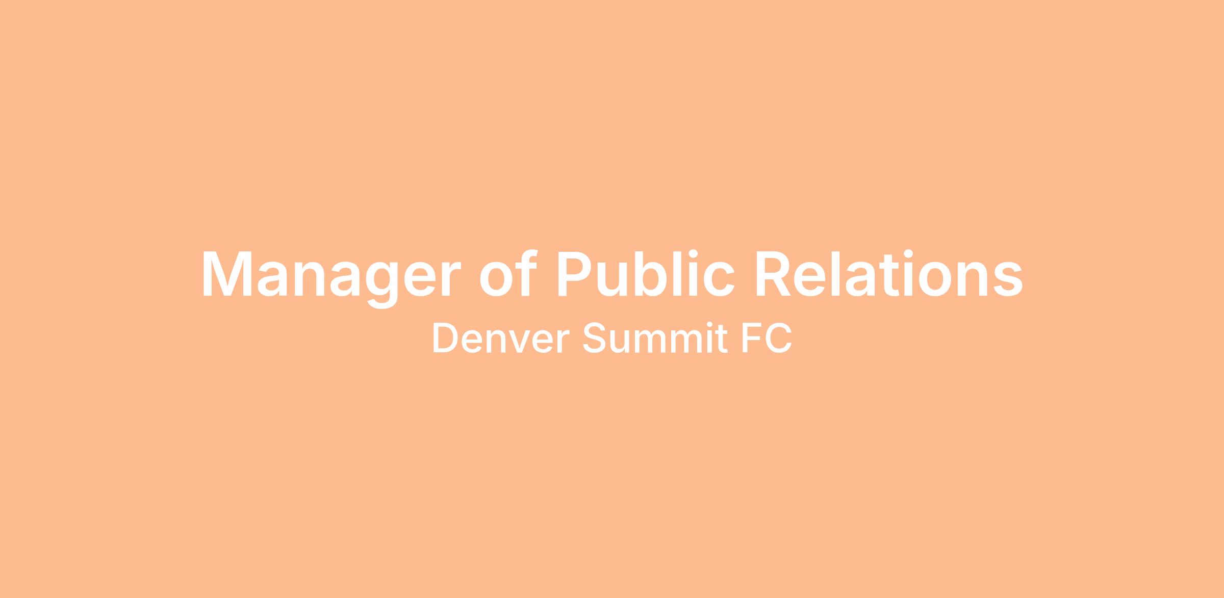Reporting to the Director of Public Relations, the Manager of Public Relations supports and executes the club’s external communications and media relations strategy. This role plays a key part in shaping Denver Summit FC’s public presence, strengthening its reputation, and delivering compelling stories that engage fans and community partners. The ideal candidate is a hands-on, detail-oriented professional who thrives in a fast-paced environment and brings strong skills in sports communications, media relations, storytelling, and relationship-building.