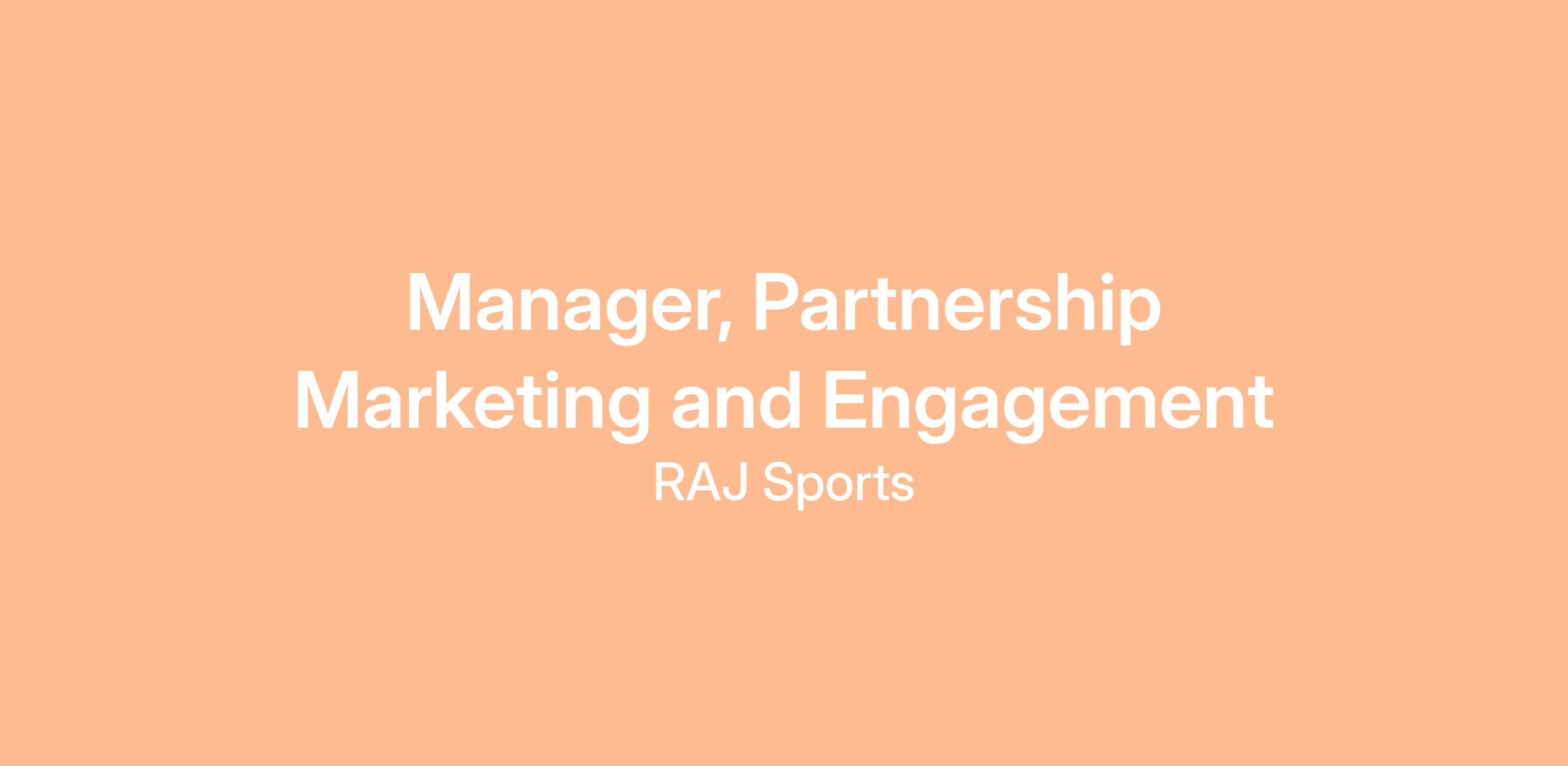 The Manager, Partnership Marketing and Engagement will play a pivotal role in implementing partnership agreements, with a specialization on events and experiences, that bridge partner brands with the RAJ Sports brand, ensuring alignment of values and driving mutual success. The Manager, Partnership Marketing and Engagement will be instrumental in the retention of partnerships, through elevated experiences, brand enhancement, and B2B connection. This role requires a skilled relationship-builder, and strategic thinker who can effectively translate partner objectives into actionable events and activations that strengthen the bond between partner brands and RAJ Sports.