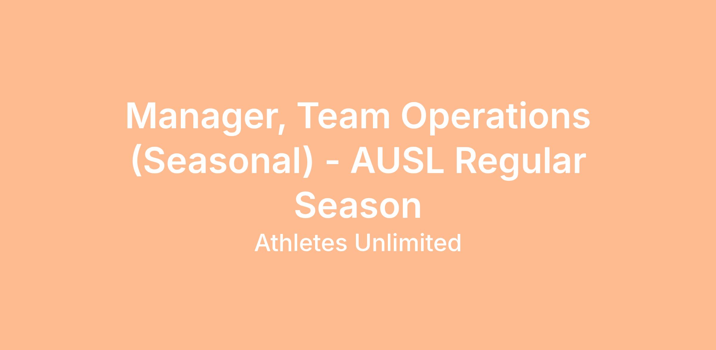 Athletes Unlimited is looking for a Manager, Team Operations lead athlete operations and deliver an elite athlete experience across the Athletes Unlimited Softball League (AUSL) Regular Season. This role will be assigned to an AUSL team and oversee the planning, coordination, and execution of comprehensive support, logistics, and engagement programs to ensure an exceptional professional experience both on and off the field. This role is seasonal and requires full time hours from April to July. It is fully remote in April, with travel to AUSL markets in May, June, and July, and reports to the Senior Manager, Team Operations.