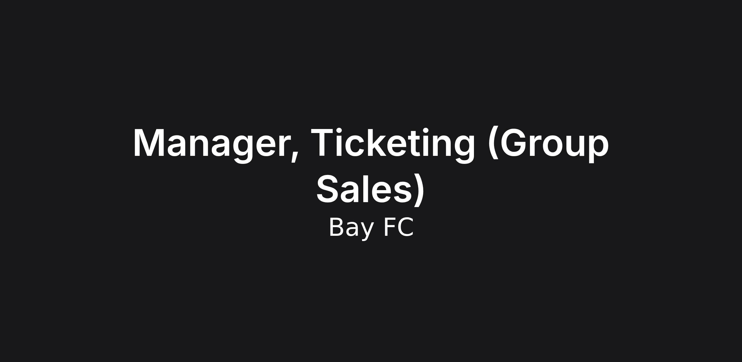 Bay FC is seeking a Manager, Ticketing (Group Sales) to join our team. The ideal candidate is a motivated sales leader with a passion for creating memorable fan experiences and building meaningful relationships within the community. This role is responsible for generating revenue through group ticket sales, developing new business opportunities, and leading strategic initiatives that expand Bay FC's presence throughout the Bay Area.