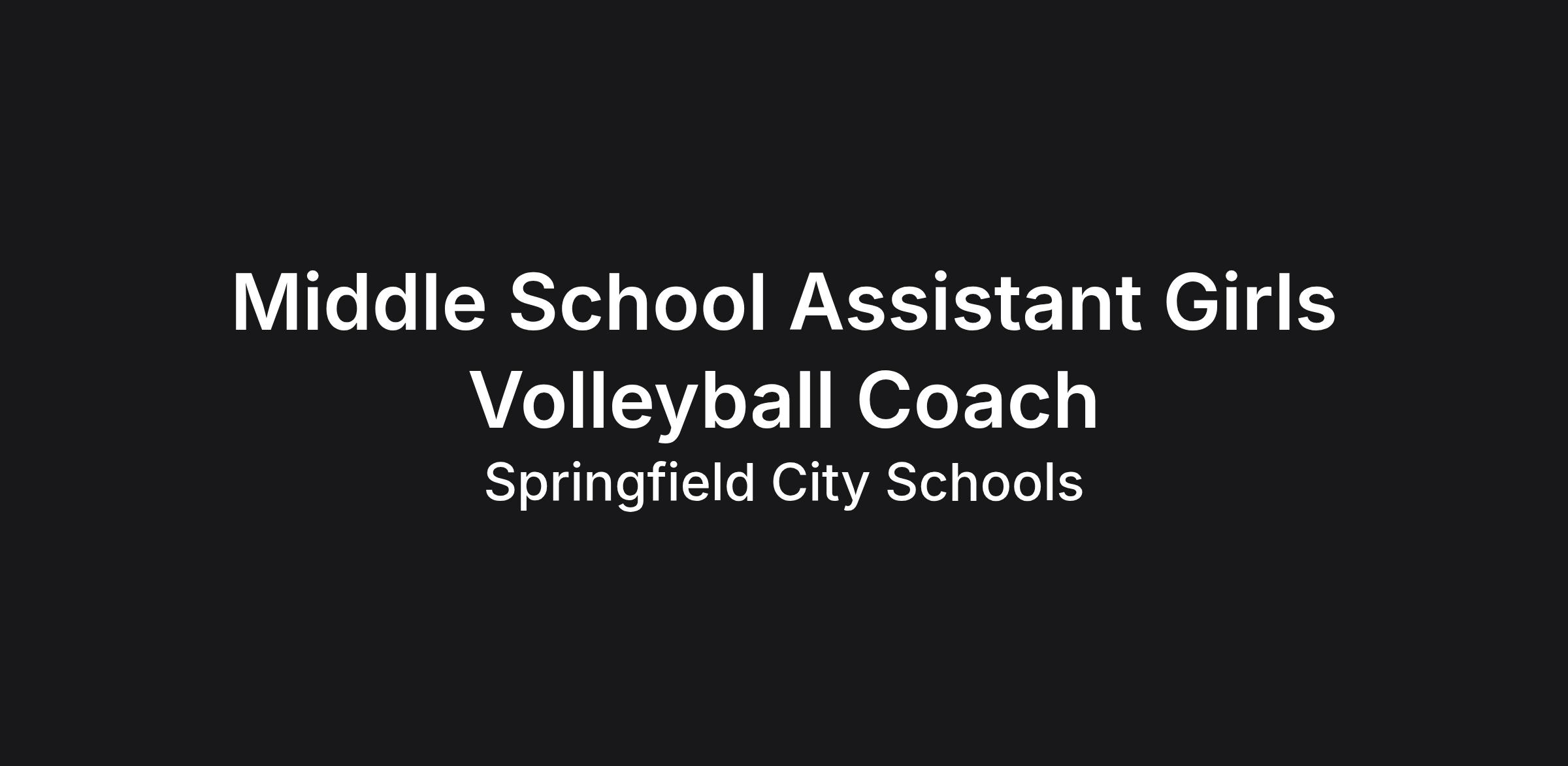The Springfield City School District, home to The John Legend Theatre, is seeking a Middle School Assistant Girls Volleyball Coach for the 2026-27 school year Fall Season. We are a nationally ranked Division I District serving approximately 7,500 Pre-K through grade 12 students, in a vibrant learning community of 17 state of the art buildings in west-central Ohio. The Springfield City School District values the racial, ethnic and socioeconomic diversity of our student body, faculty and staff. Our academic and extracurricular aim is to ensure social and emotional learning growth for students with a wealth of opportunity, including a 1:1 initiative and the YouMedia Center, which is a digital learning lab offering students activities such as 3-D printing, graphic design, and videography. We are Wildcats!