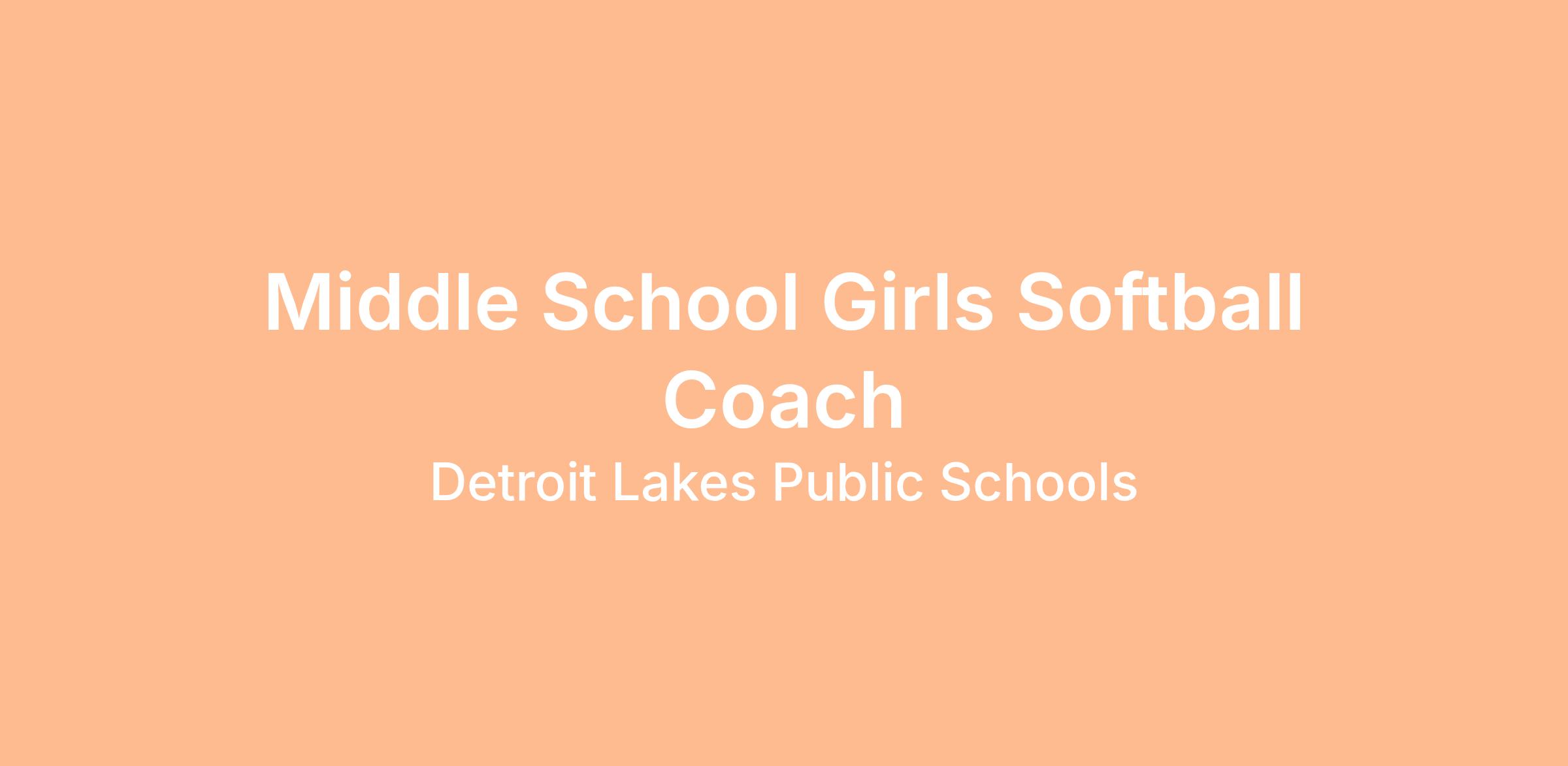 Detroit Lakes Public Schools is seeking a Coach for its 7th/8th Grade Girls' Softball Program.