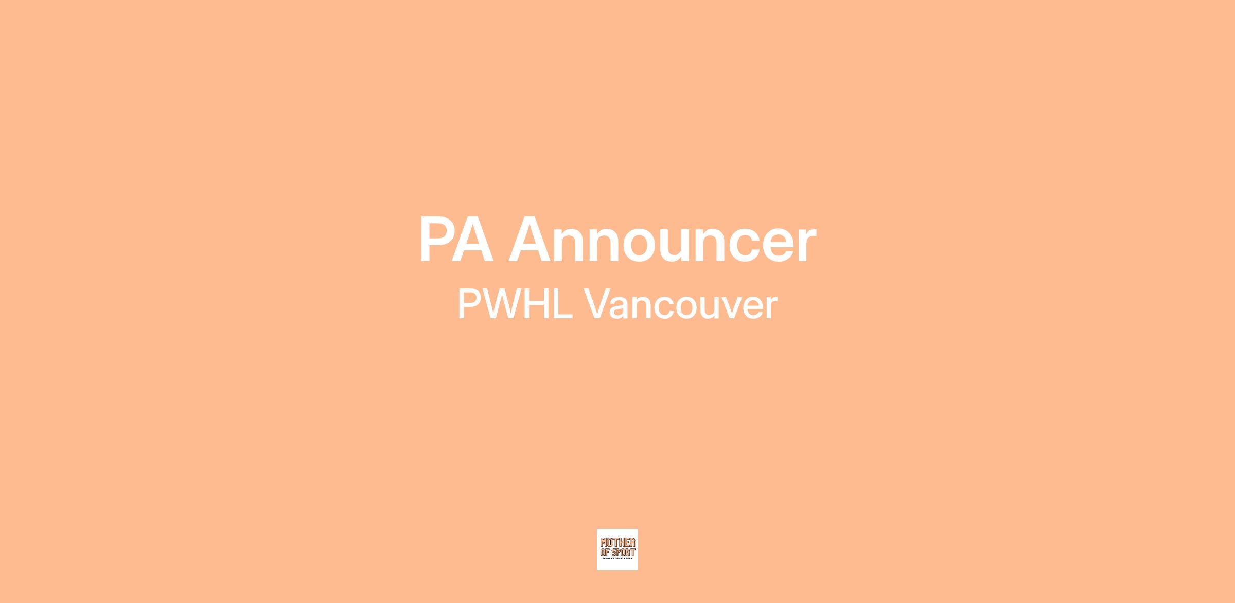 The Professional Women’s Hockey League (“PWHL”) is seeking an enthusiastic, passionate and experienced Public Announcer (“PA”) for the PWHL Vancouver team. This position reports to the Manager, Game Presentation and Fan Experience and will be responsible for all in-game PA duties including promotional reads, goal announcements and crowd prompts.