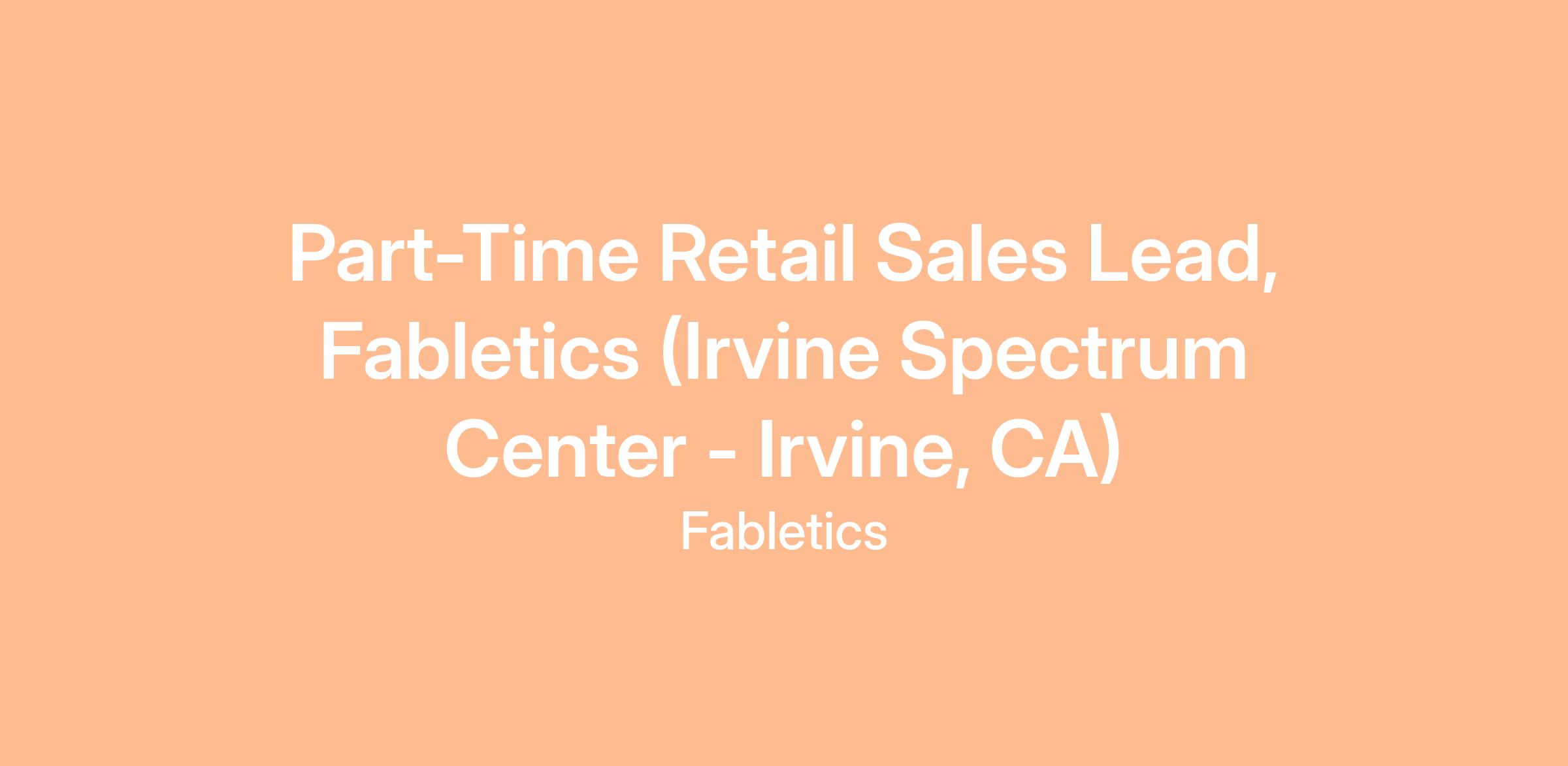 We are currently looking for a passionate and driven Part-Time Sales Lead for our upcoming Fabletics location at Irvine Spectrum Center in Irvine, CA!