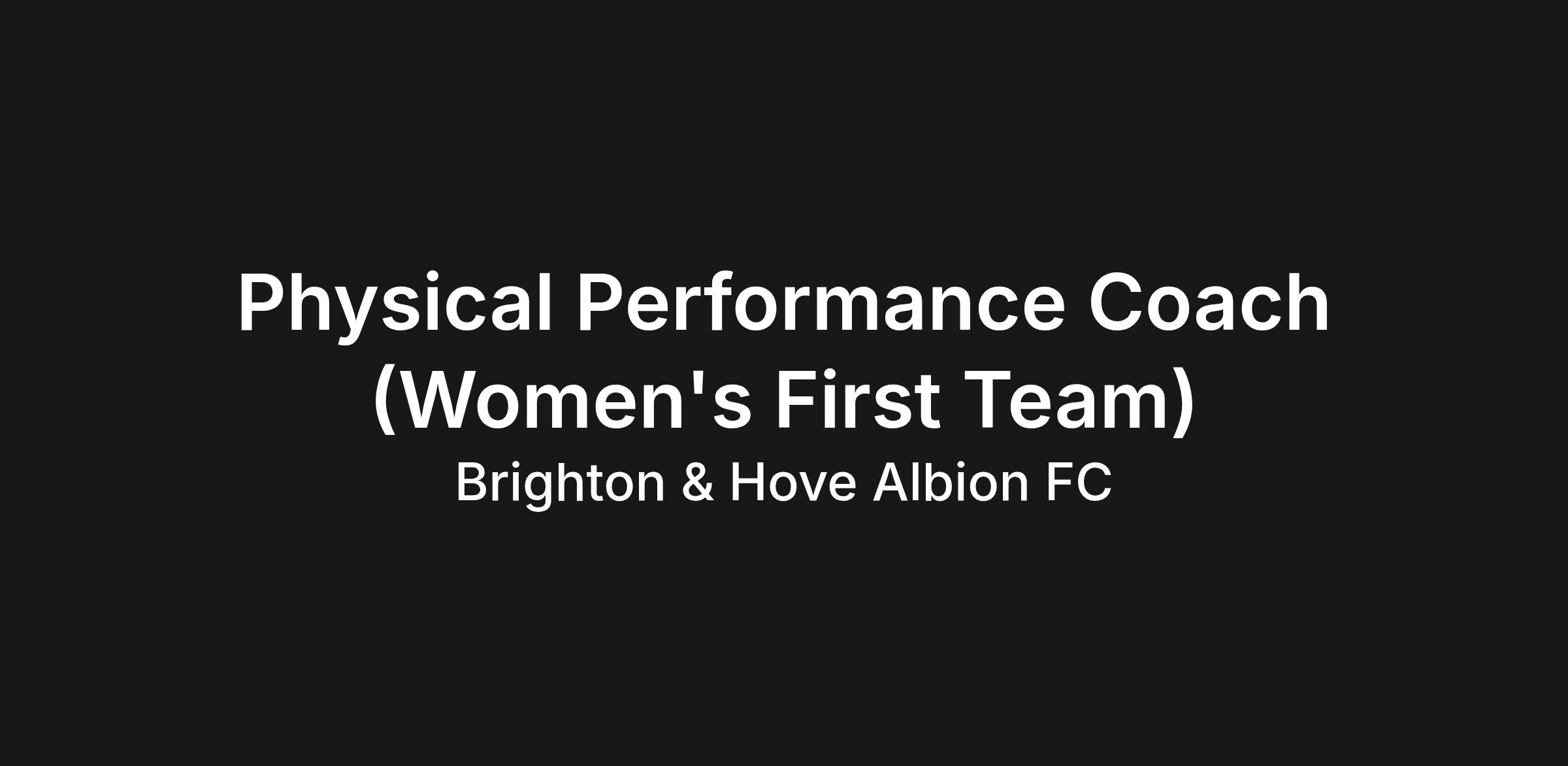 Physical Performance Coach (Women's First Team) Role: Physical Performance Coach (Women's First Team) Hours: Full time, to follow the Women's First Team schedule Location: American Express Elite Football Performance Centre, Lancing Contract Type: Permanent Deadline Day: 6th May 2026